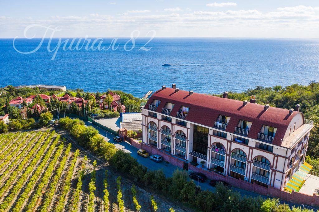 Здесь продаются готовые апартаменты с базовой отделкой, мебелью и техникой. Площадь от 27 до 140 кв.м, при этом, в каждом апартаменте своя большая терраса с прямым видом на море, ялтинскую бухту, заповедную зону и виноградники. Так же, на территории комплекса, работает подрядная организация, которая готова выполнить ремонт на любой вкус.