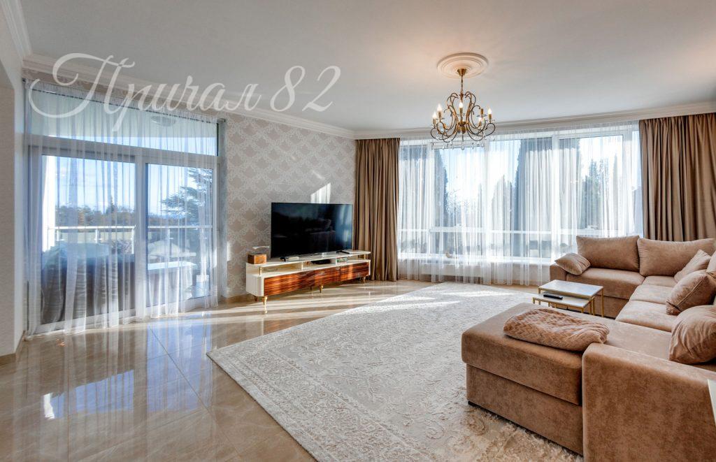 Продается эксклюзивный апартамент с дизайнерской отделкой с видом на Приморский парк и море, расположенные в престижном комплексе «У Черного моря» в престижном районе Ялты — Приморском Парке им. Гагарина.