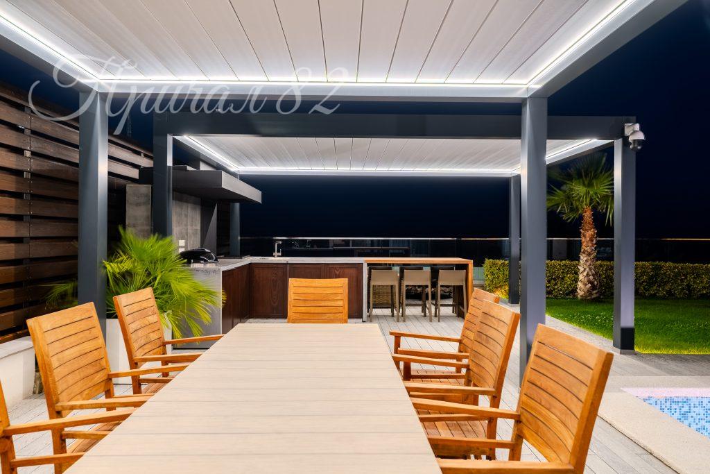 Вилла полностью закрывается, при этом персонал может попасть на участок через отдельный служебный вход — для ухода за бассейном и садом.