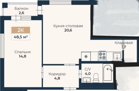 - общая площадь - 48,5 кв.м