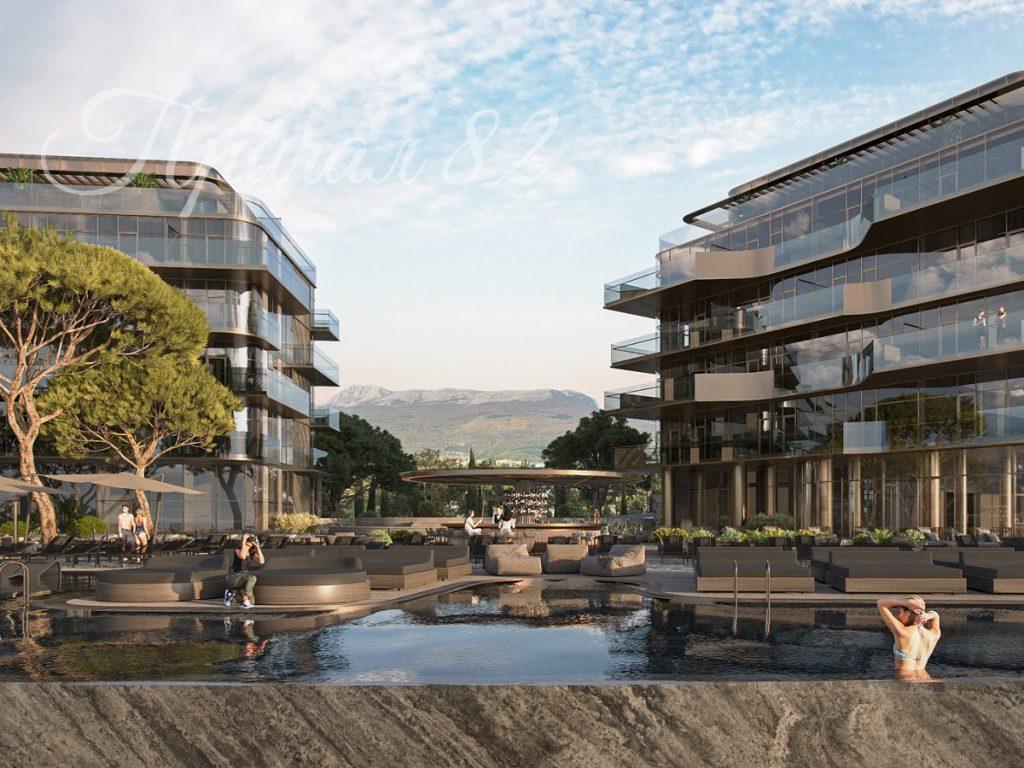 Ривьерная архитектура комплекса органично вписана в природный ландшафт с панорамными видами на море и горы. Здания повторяют ритм крымских скал, скульптурные фасады, динамичные линии, игра света и тени.