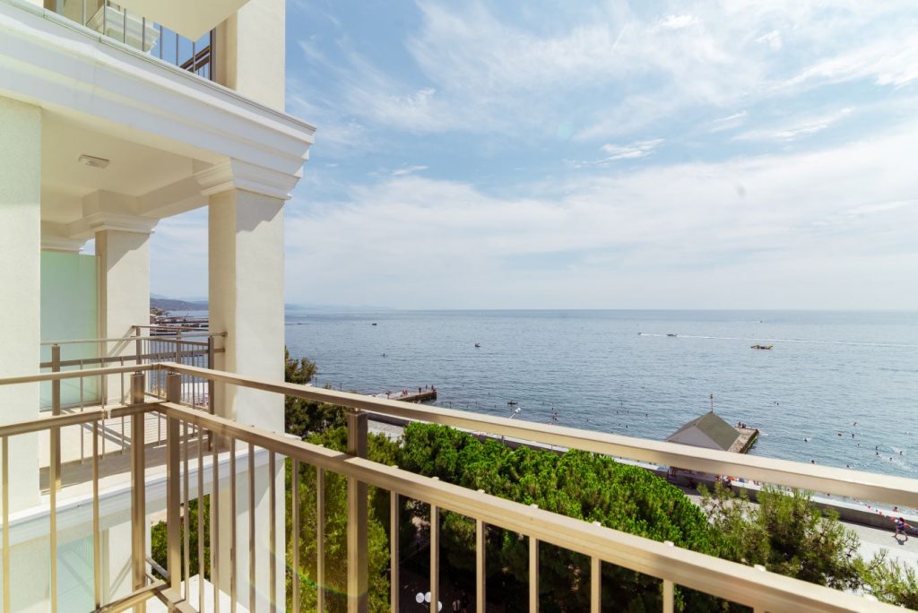 В продаже 2-комнатные апартаменты в комплексе «Чайка». Общая площадь — 49,3 кв.м., расположены на 5м этаже. Из окон открывается вид на море и набережную.