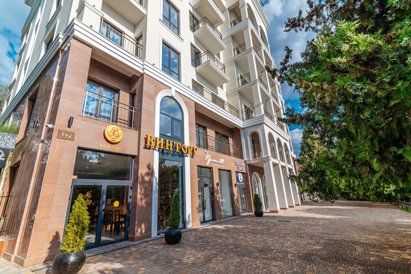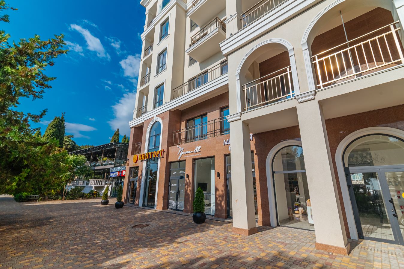 Территория дома компактная, но здесь для резидентов доступна вся инфраструктура набережной.