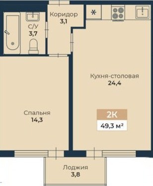 - общая площадь - 49,3 кв.м