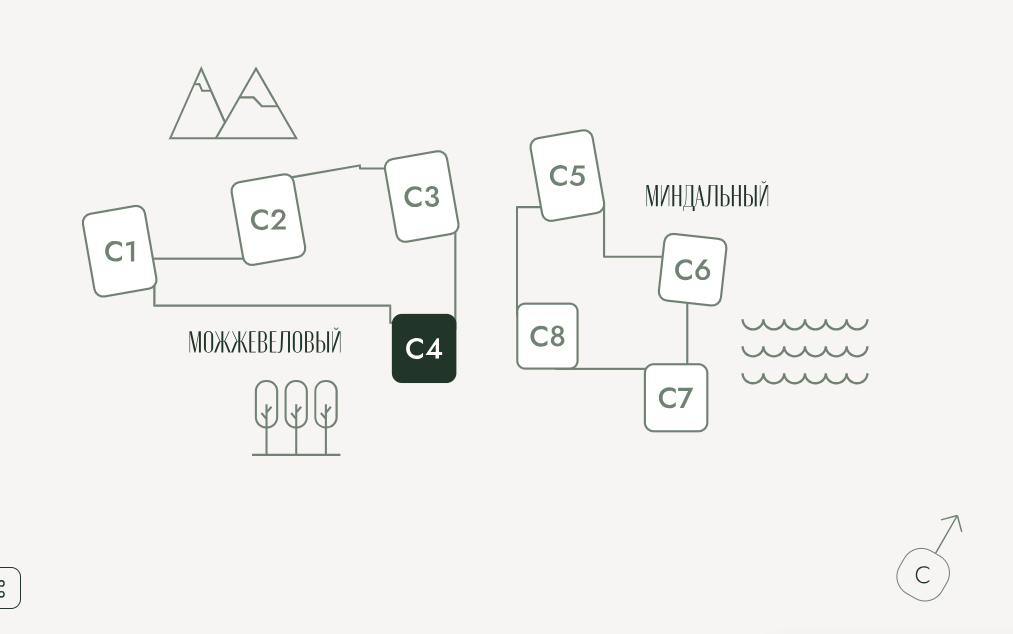 Территория комплекса 5,5 га, а территория дендропарка – 16 Га. 1-я очередь строительства кварталы «Можжевеловый» и «Миндальный» 8 корпусов, высотой от 7 до 14 этажей. Площадь квартир представлена от 27 кв.м. до 111 кв.м. Панорамное остекление, открытые террасы, пентхаусы и двухуровневые квартиры.