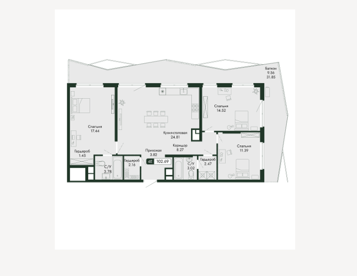 - общая площадь - 102,69 кв.м