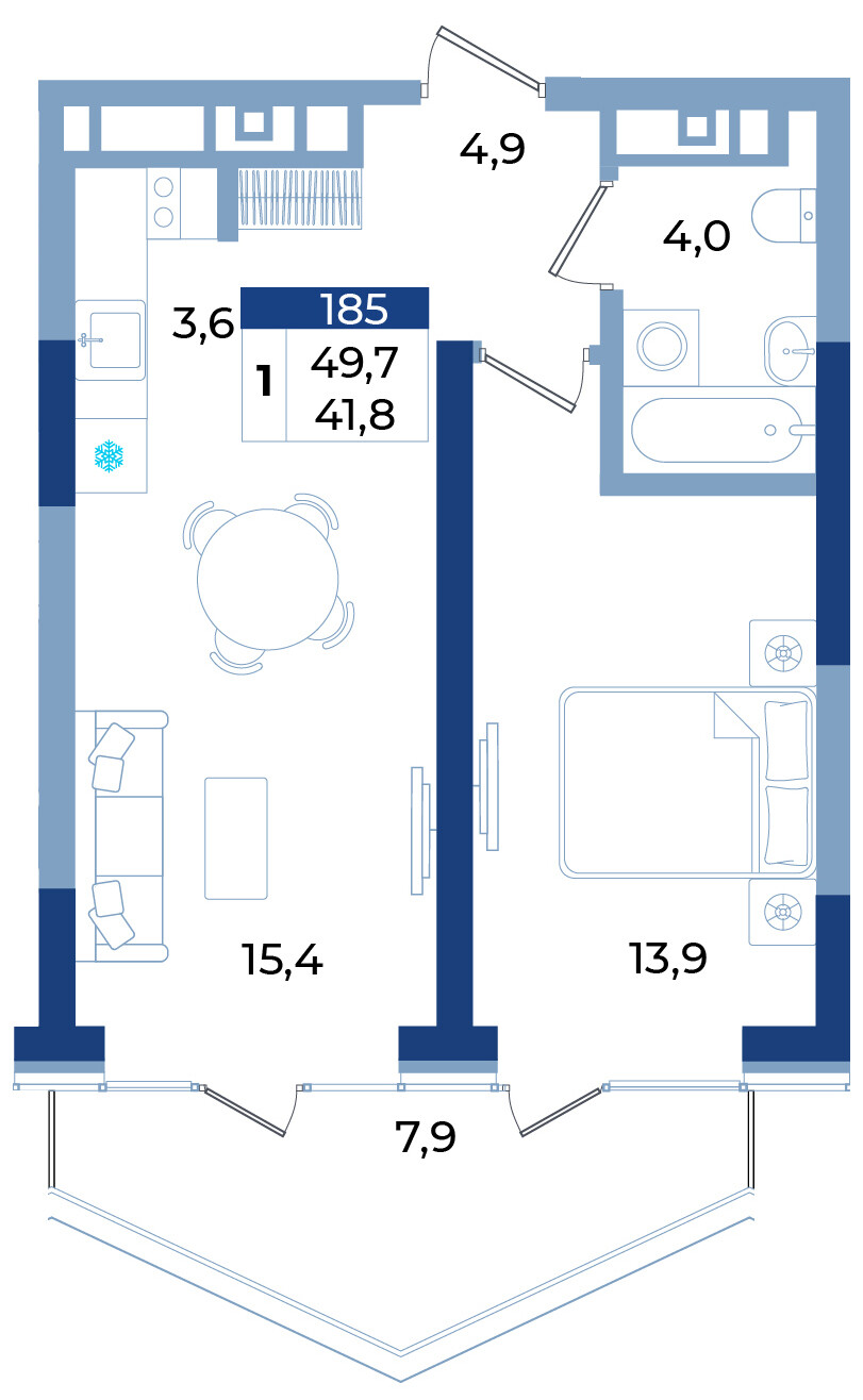 • общая площадь - 49,7 кв.м