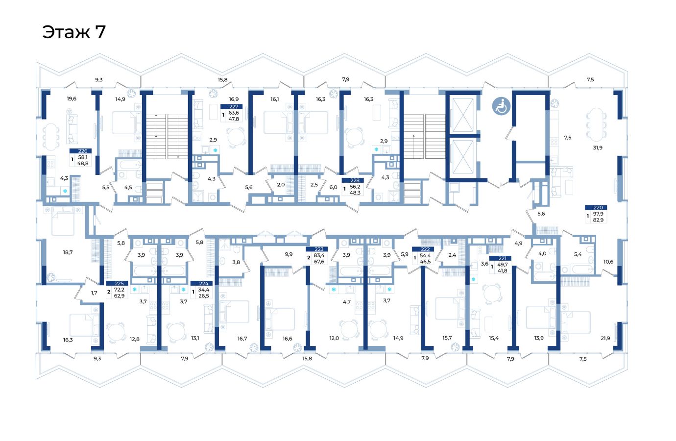 • эксклюзивный формат пентхаусов на верхних этажах (всего 6 лотов) от 121,6 кв.м. до 237,6 кв.м.