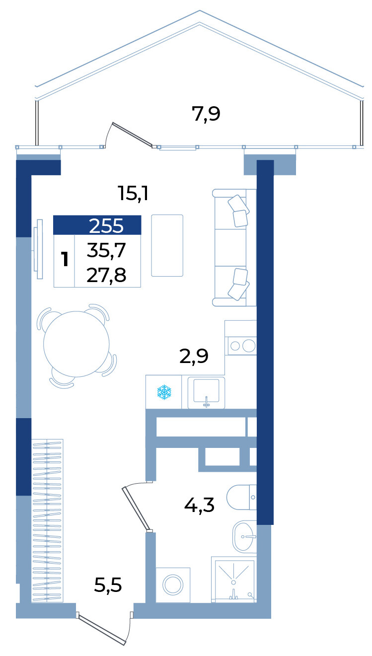 - общая площадь -35,7 кв.м