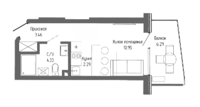 Общая площадь — 27,37 кв.м.