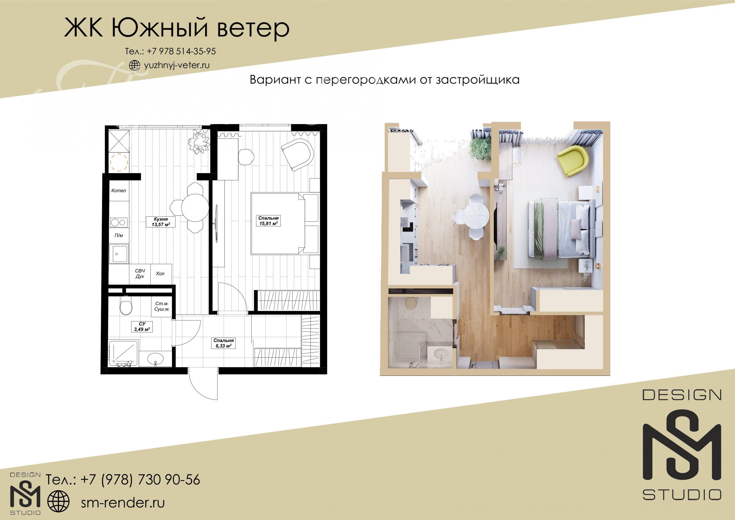 Однокомнатная квартира (евро-2) ЖК Южный ветер в Гурзуфе, общей площадью 38 кв.м., в том числе балкон, расположена на 6-ом этаже, дом сдан, новый жилой комплекс комфорт-класса расположен в экологически чистом, уединённом и спальном районе большой Ялты посёлок Гурзуф, с предчистовой отделкой, автономным отоплением и машино-местом в подарок.