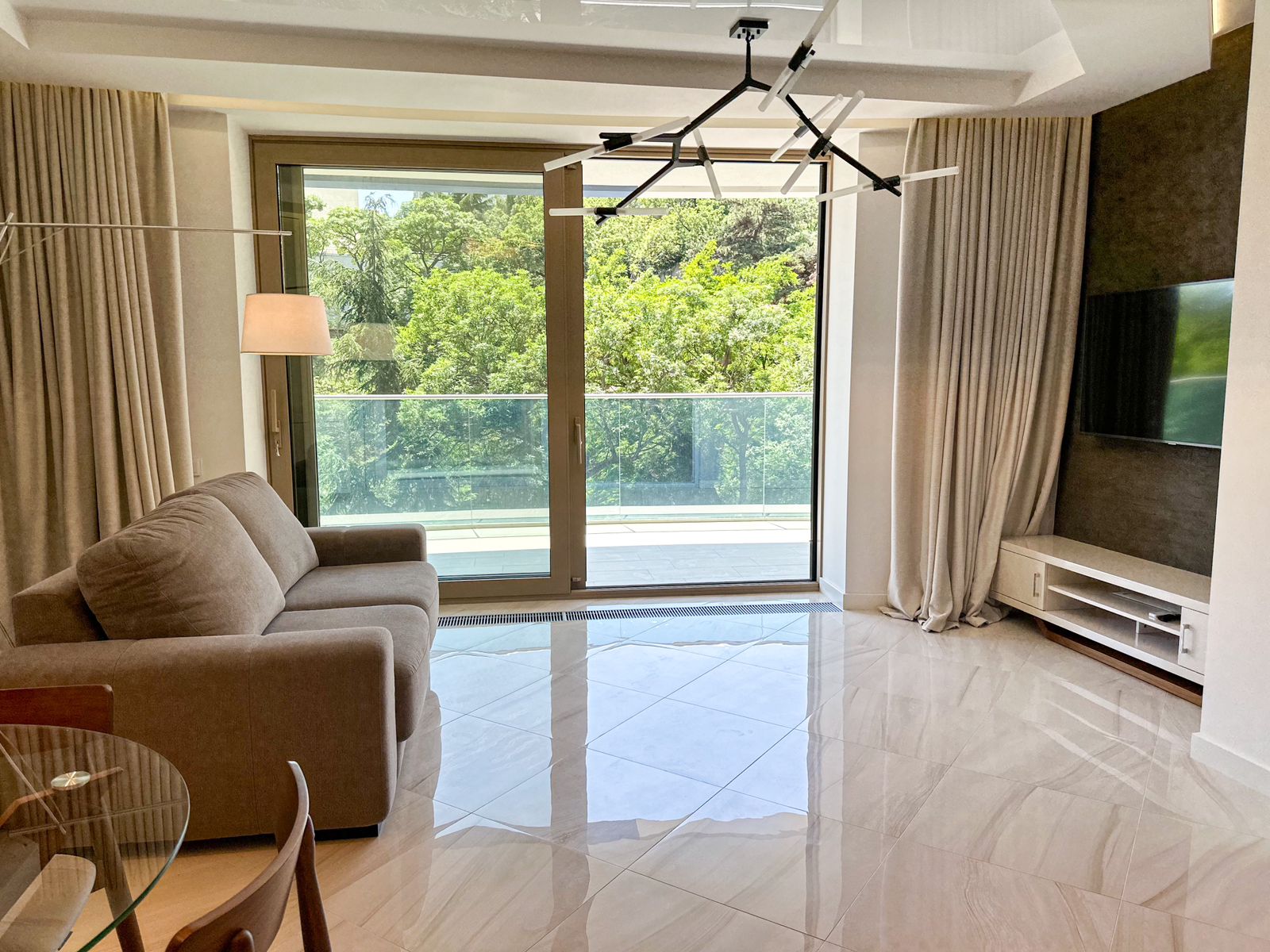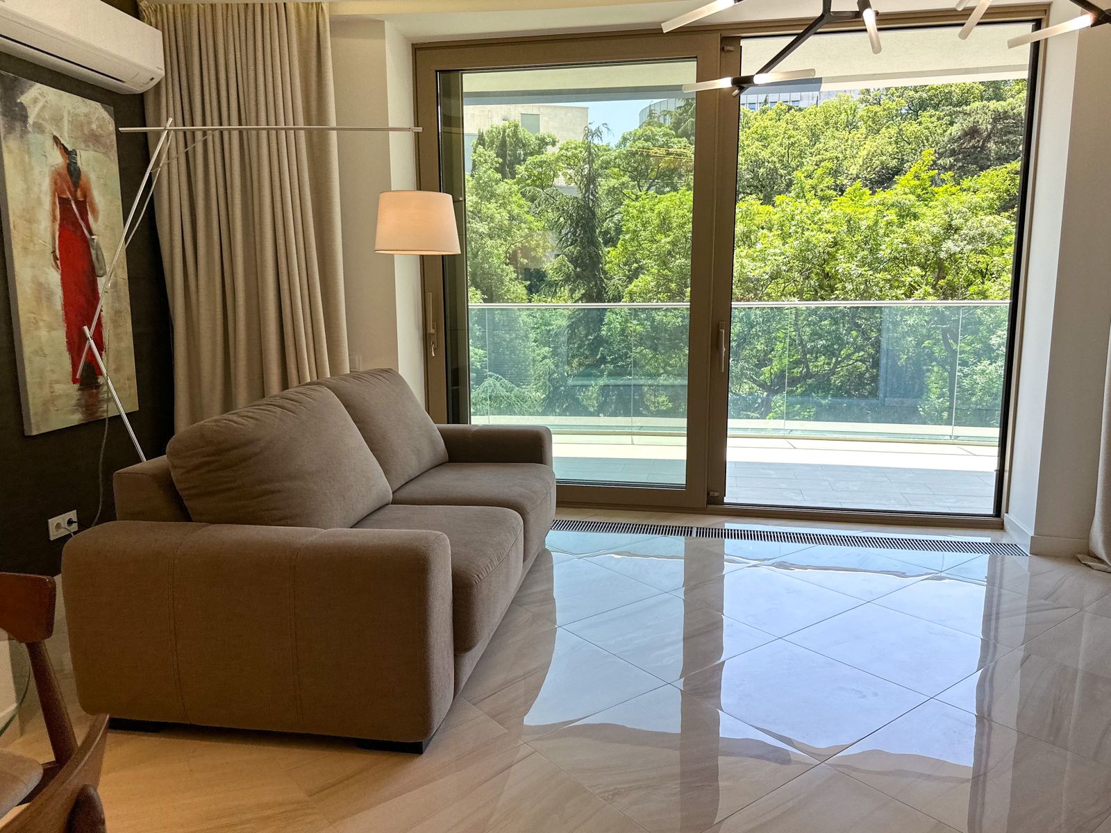 Апартамент расположен на 4 этаже – откуда открывается красивейший вид на парковую зелень и море.