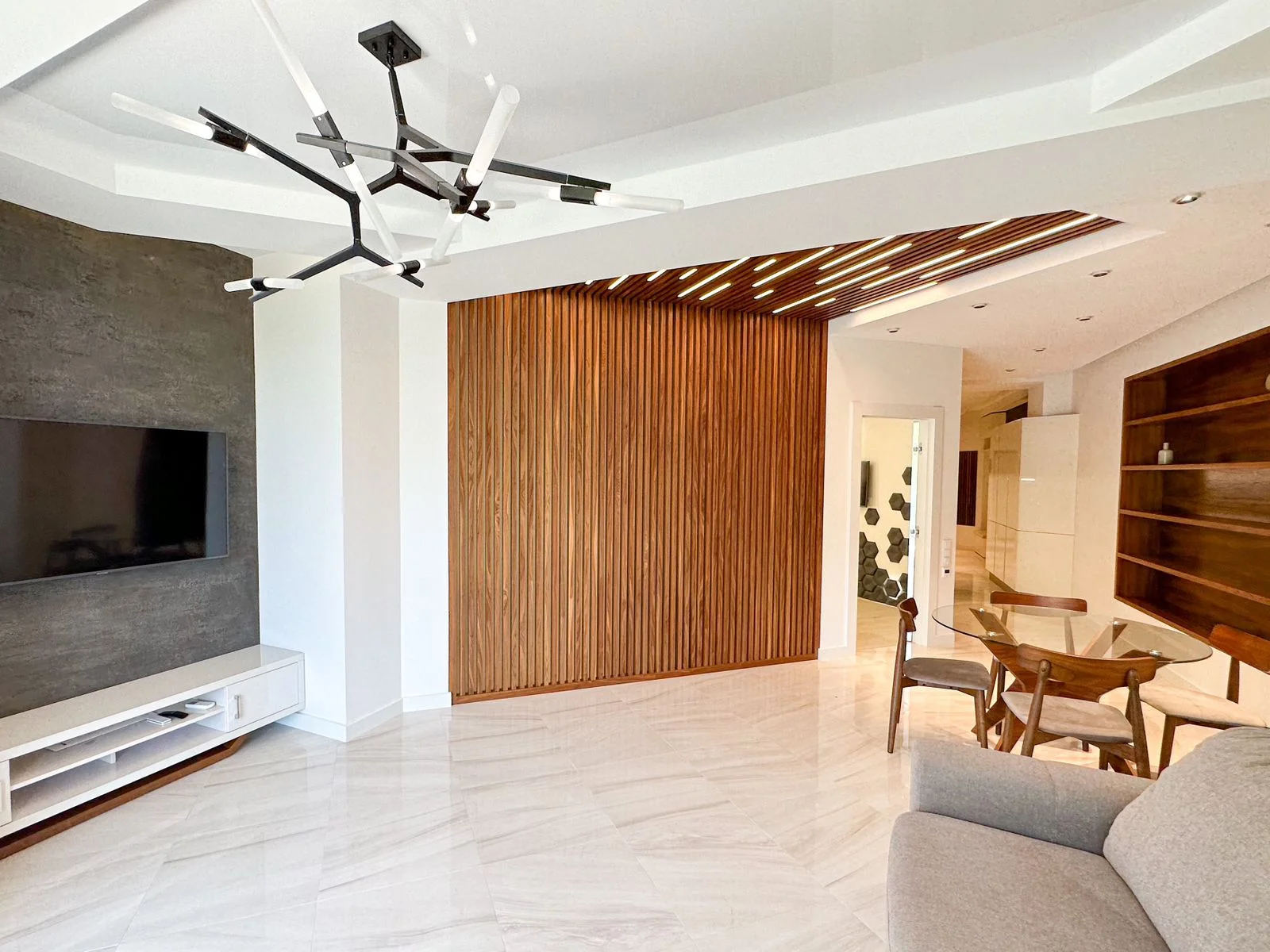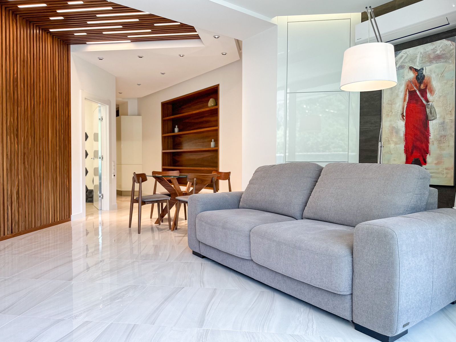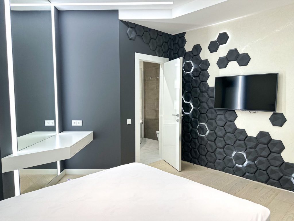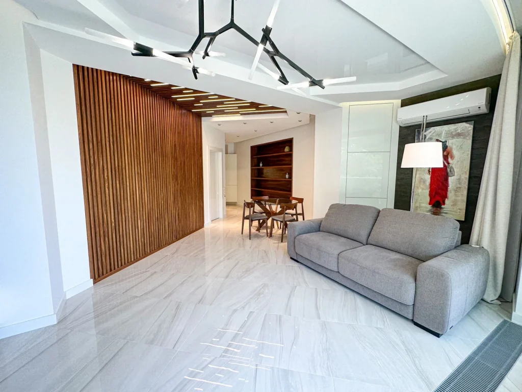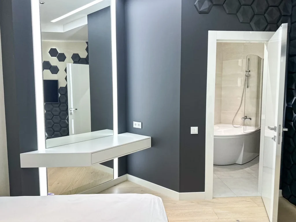 В апартаменте выполнена качественная отделка по авторскому дизайн-проекту в современном стиле.