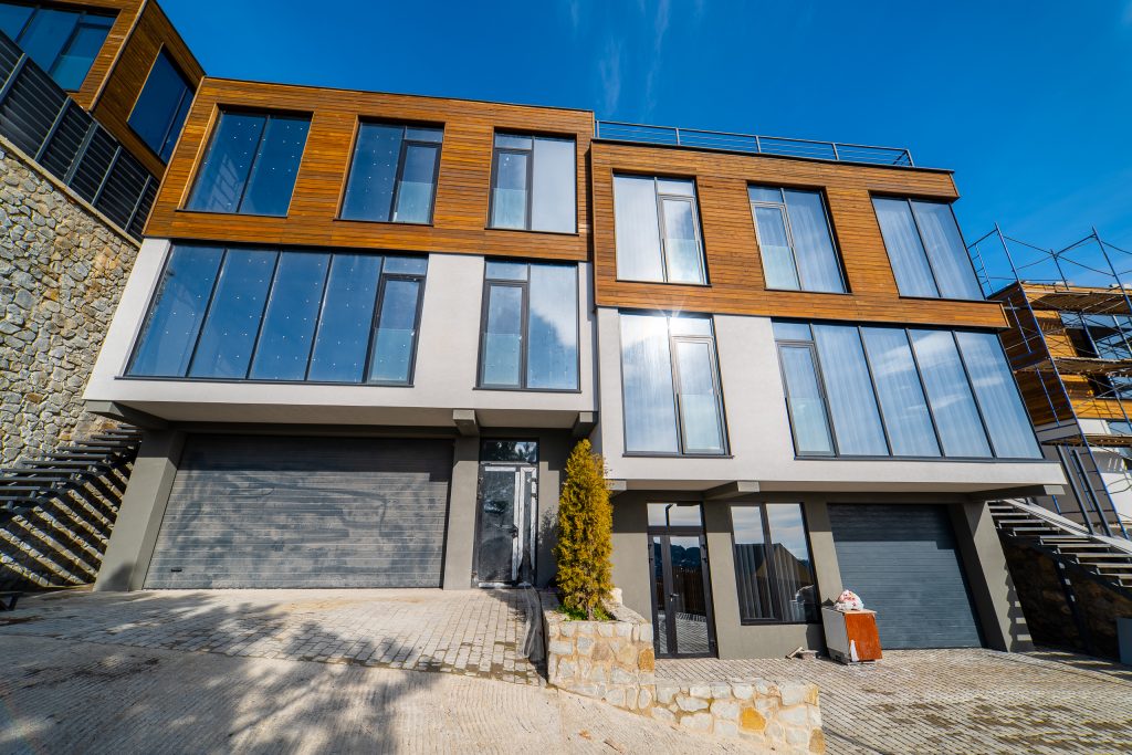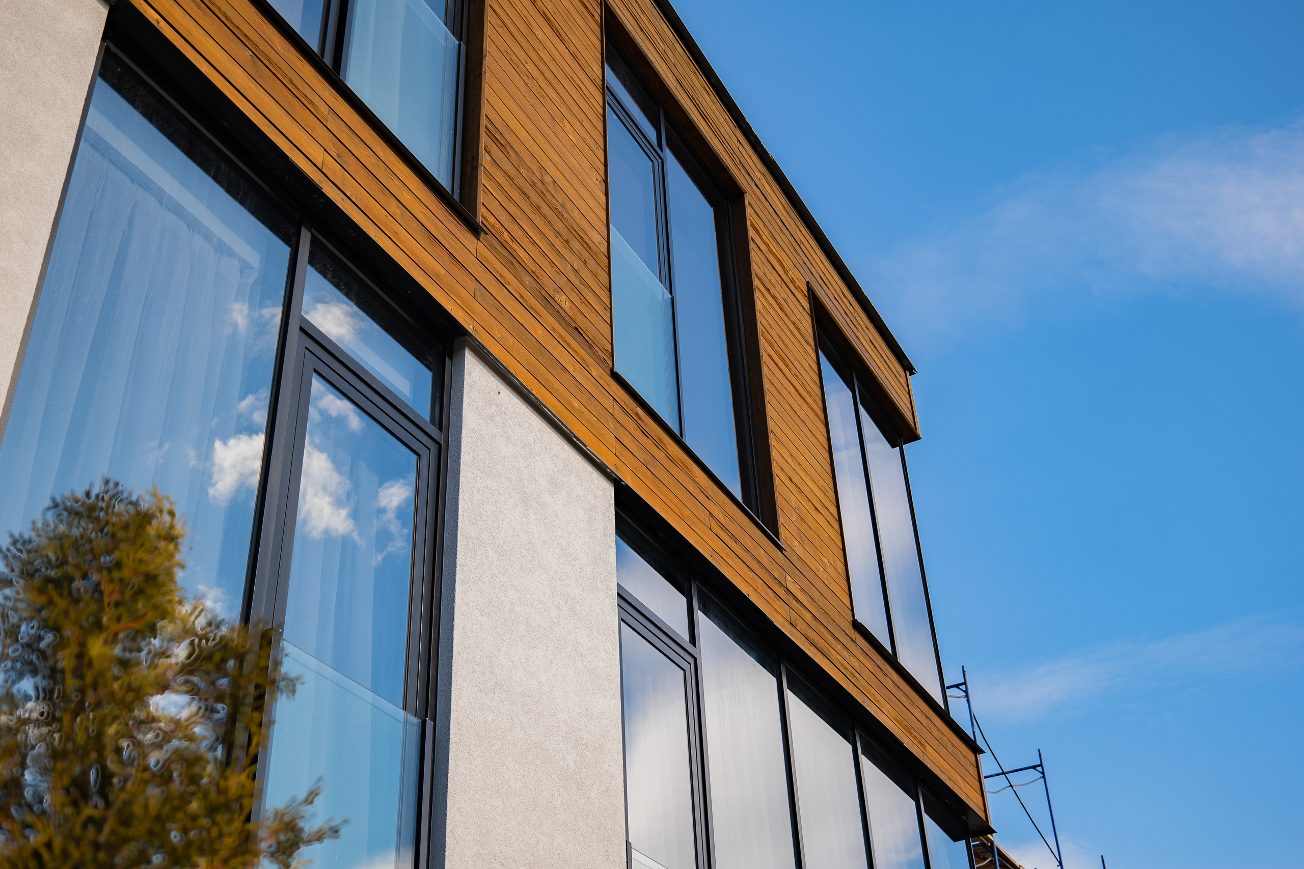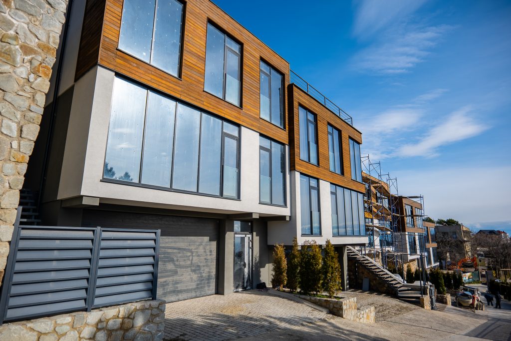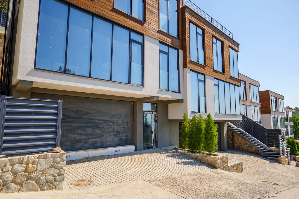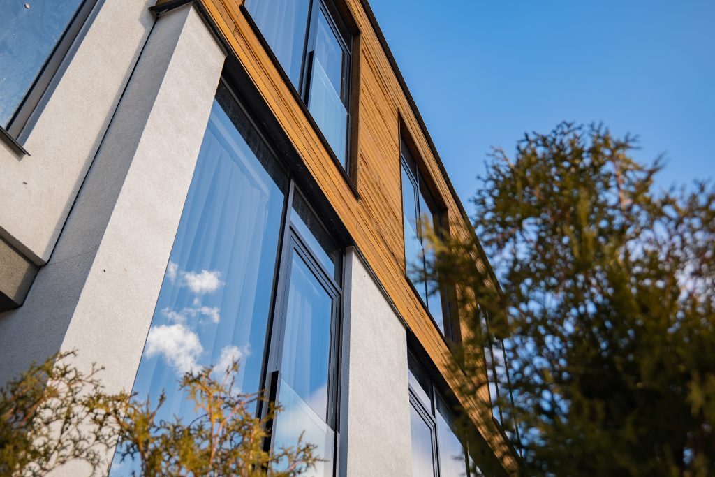 Фасад частично выполнен из панорамных окон с восточной, южной и северной