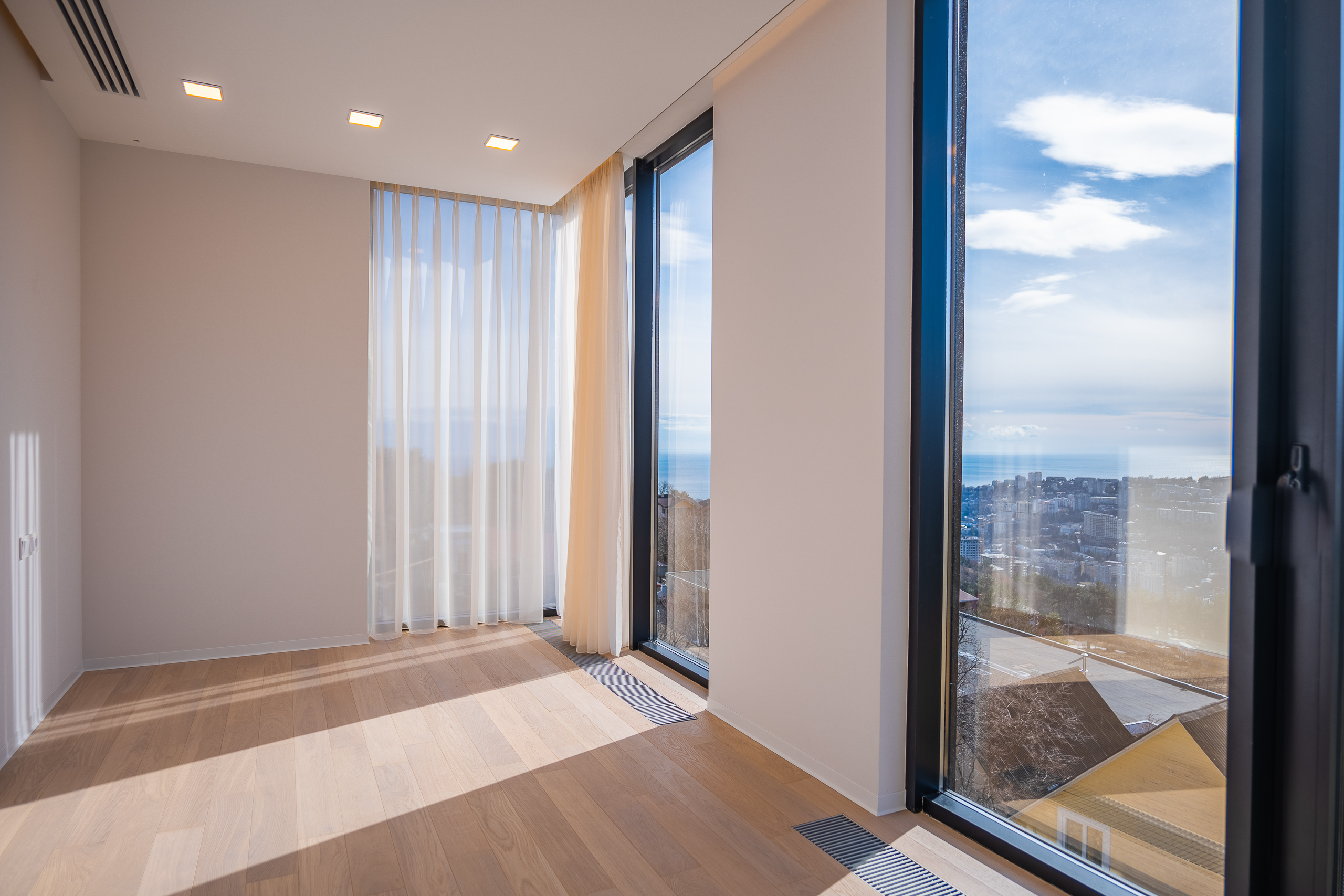 просматриваются горы, море и панорама города.