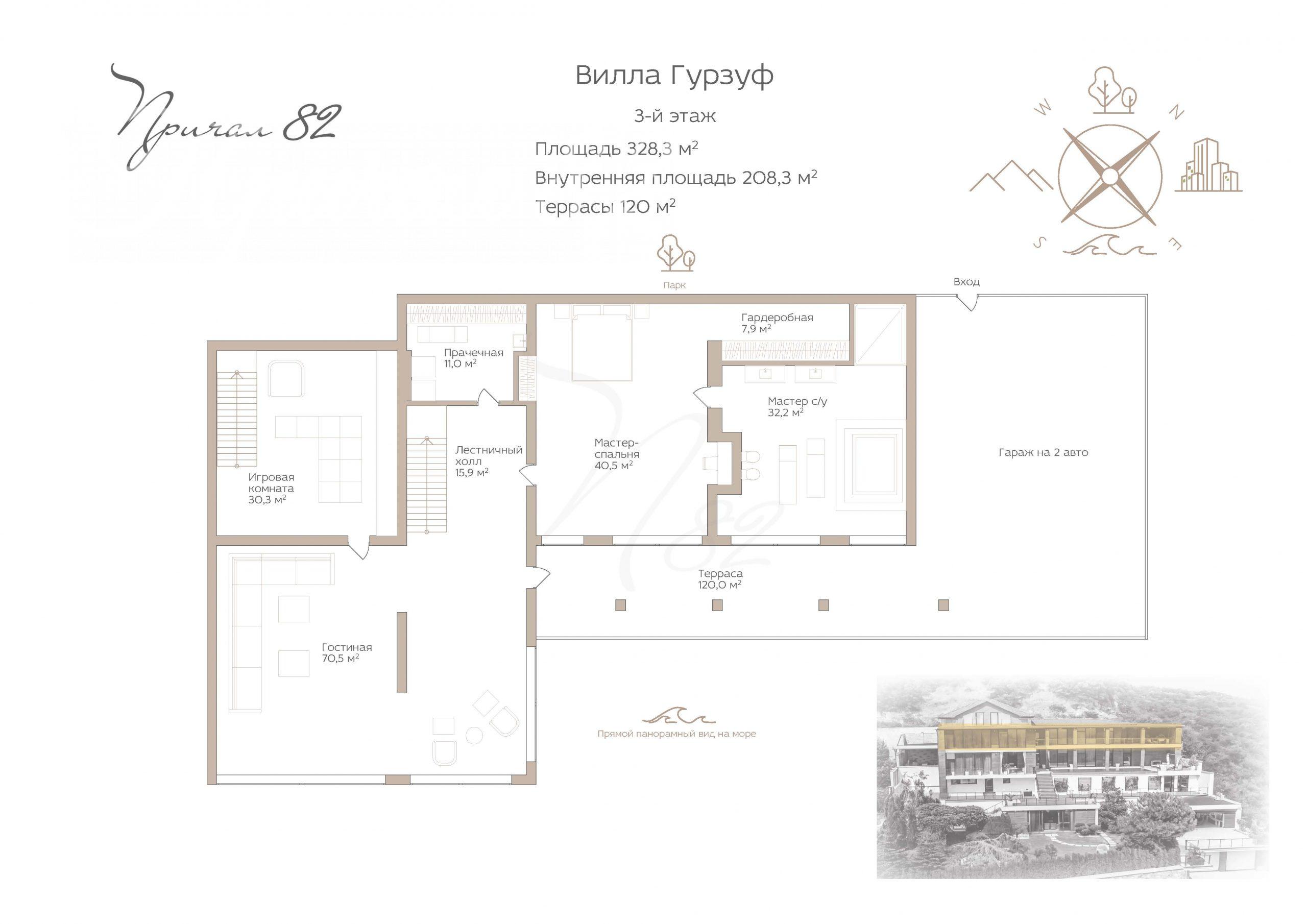 Эта вилла — редкость даже для Ялты. Новый, ухоженный дом площадью 1000 м² (600 м² внутренняя) находится в закрытом, охраняемом посёлке, где нет случайных соседей — только статусные виллы. Участок 16 соток — зелёный, просторный, с хвойными и фруктовыми деревьями, ландшафтным дизайном, зонами для отдыха. В доме 4 спальни, кабинет, игровая, две комнаты отдыха, два зала, летняя кухня, паркинги на 6-8 машин, террасы и т.д.