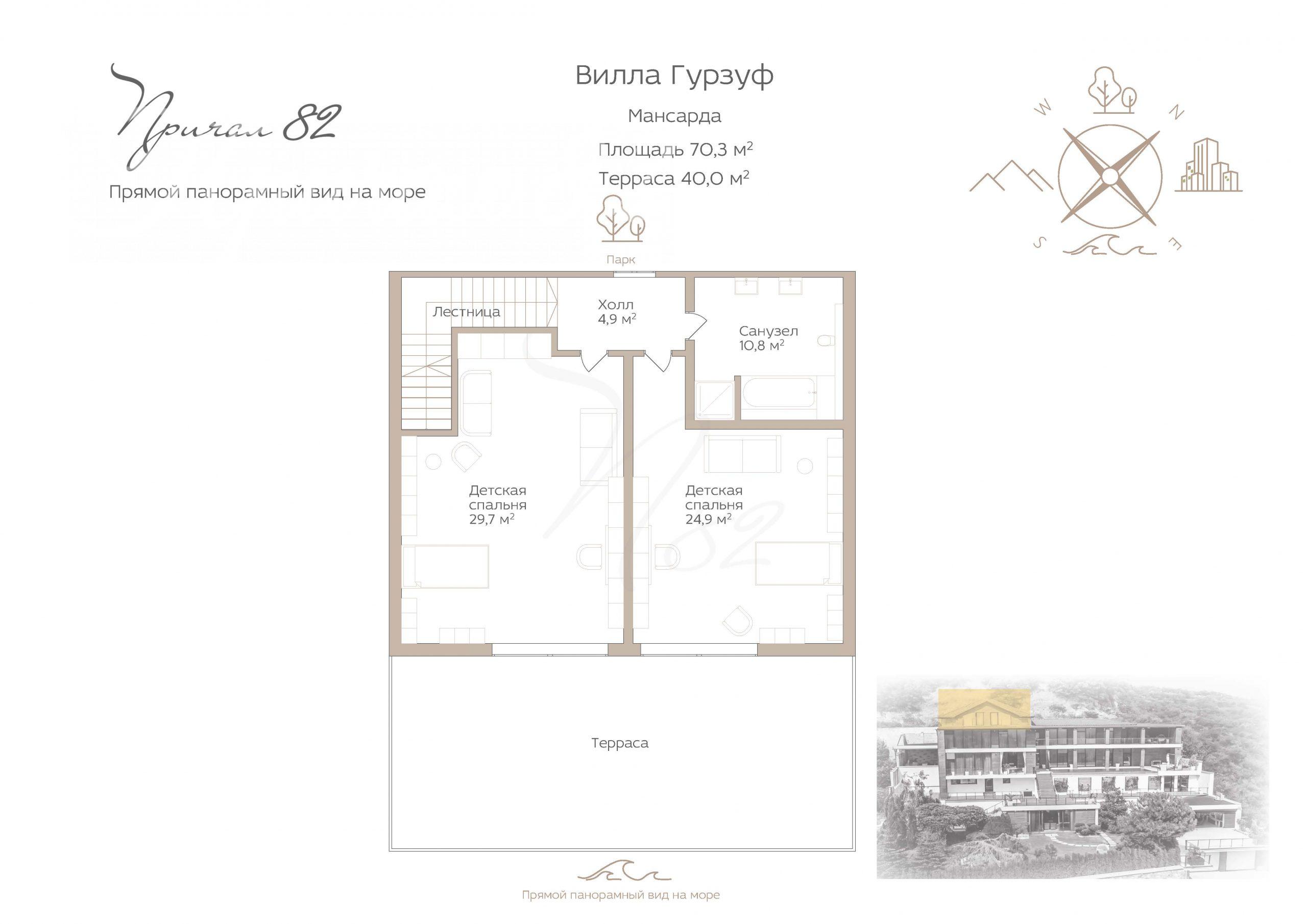 Третий этаж: две детские комнаты, с/у, видовая терраса.