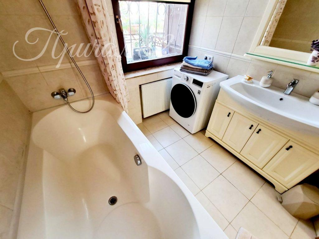 Санузел — просторный, с ванной и окном.
