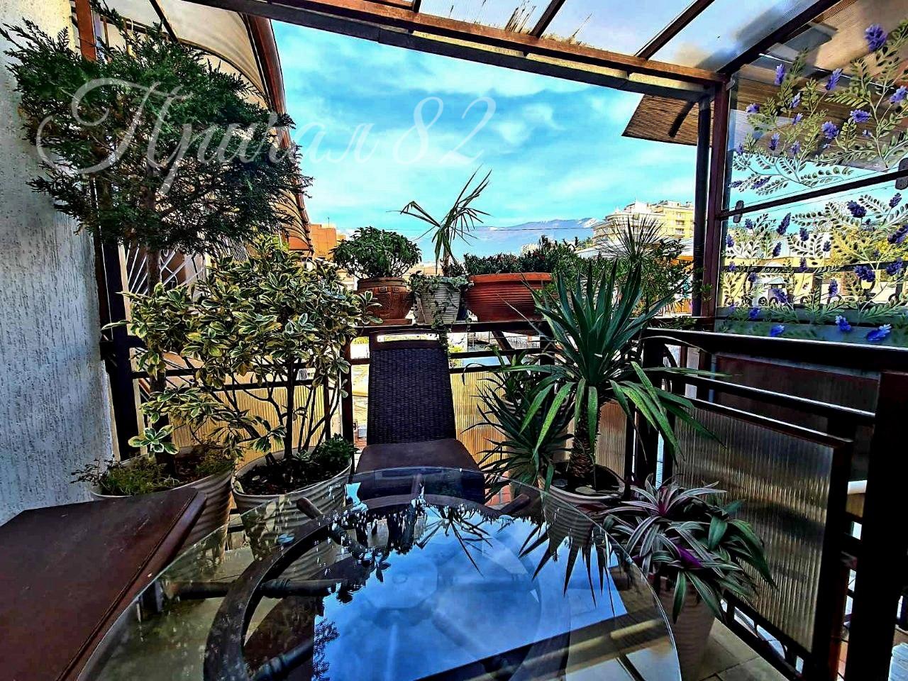 Терраса с цветочными композициями, столиком для отдыха — уютное место для утреннего кофе и вечернего отдыха.