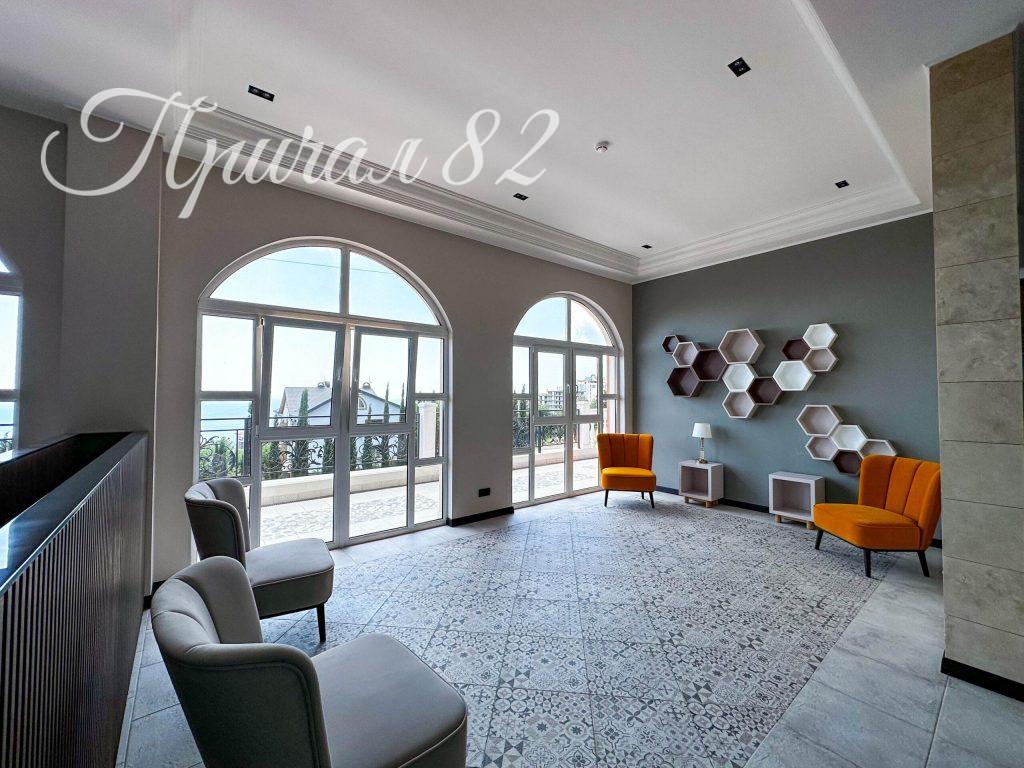 Видовая квартира с просторной террасой в ЖК Монако в Ялте общей площадью 62,5 кв.м., с которой открывается великолепный прямой панорамный вид на море, квартира с расположена на комфортном 2-ом жилом, а по факту на уровне 3-го этажа 8-ми этажного дома, с остеклением от пола до потолка, благодаря чему квартира очень светлая.
