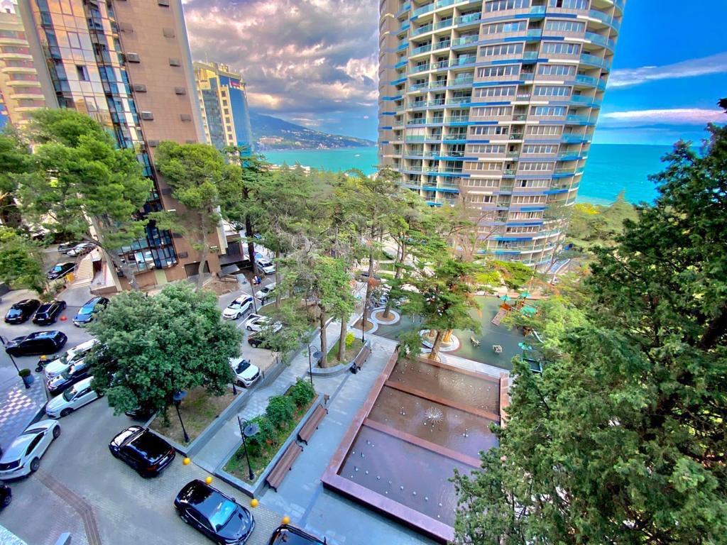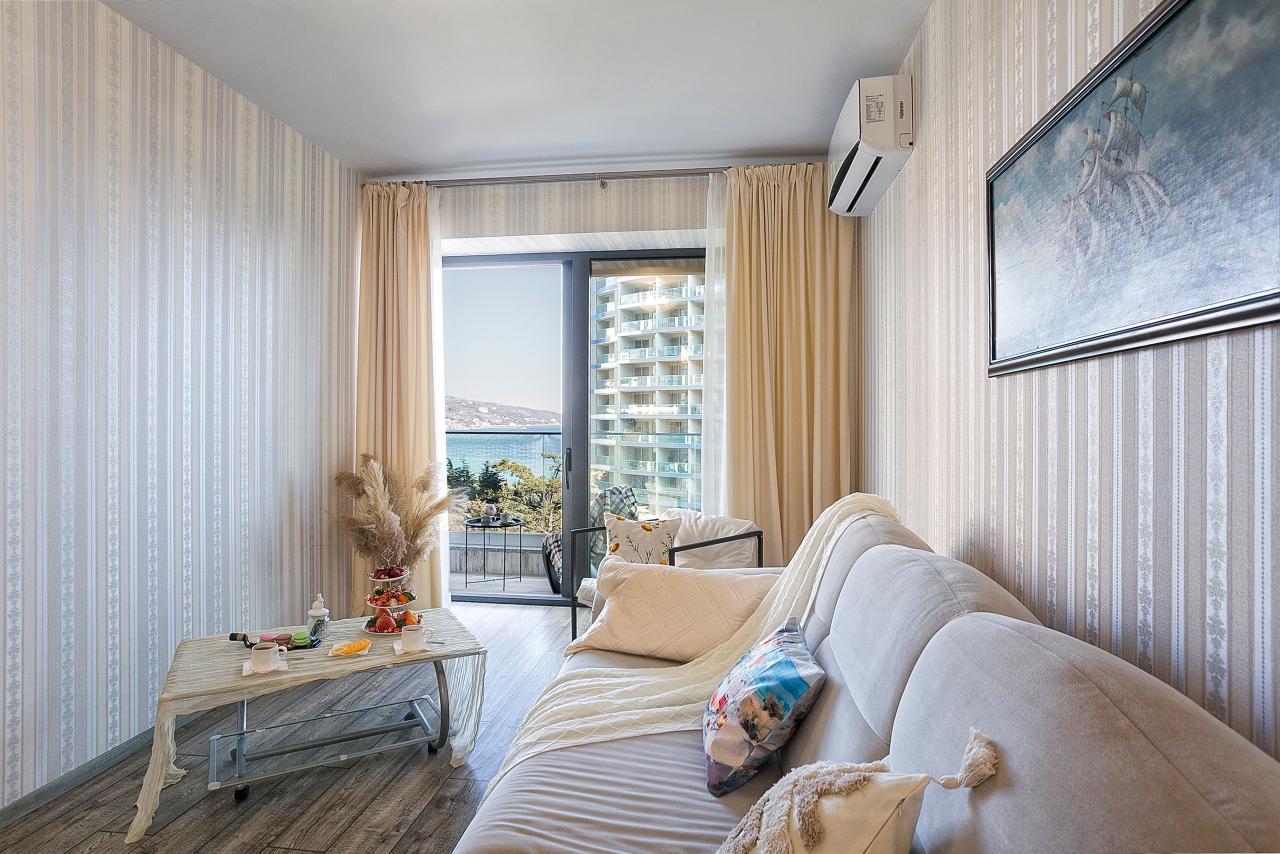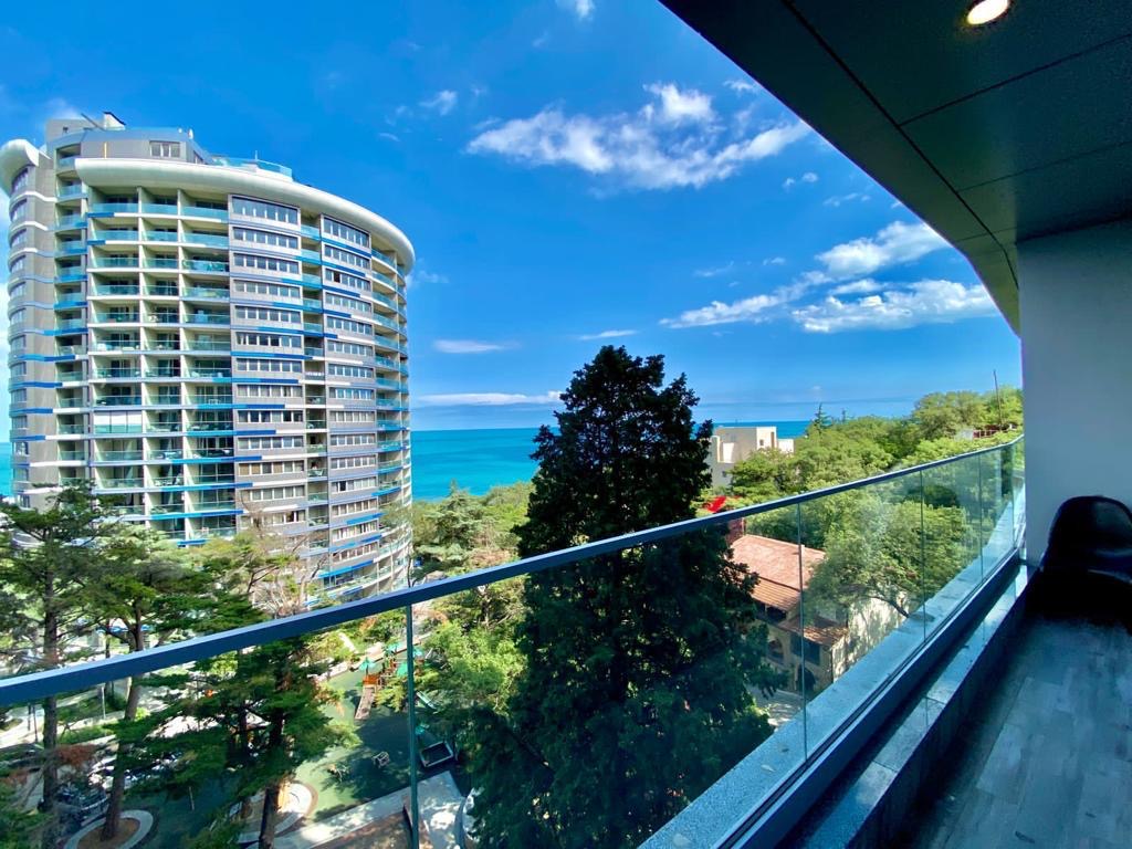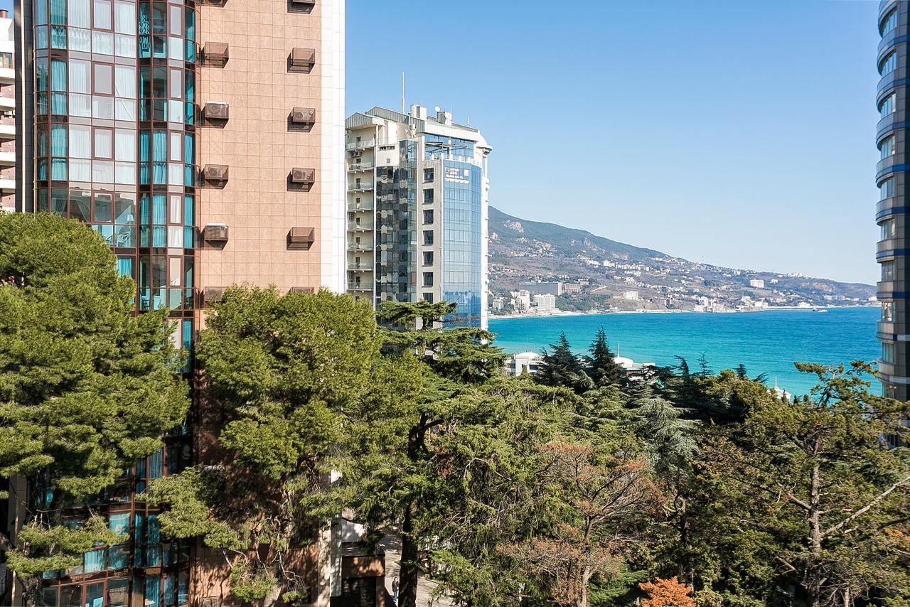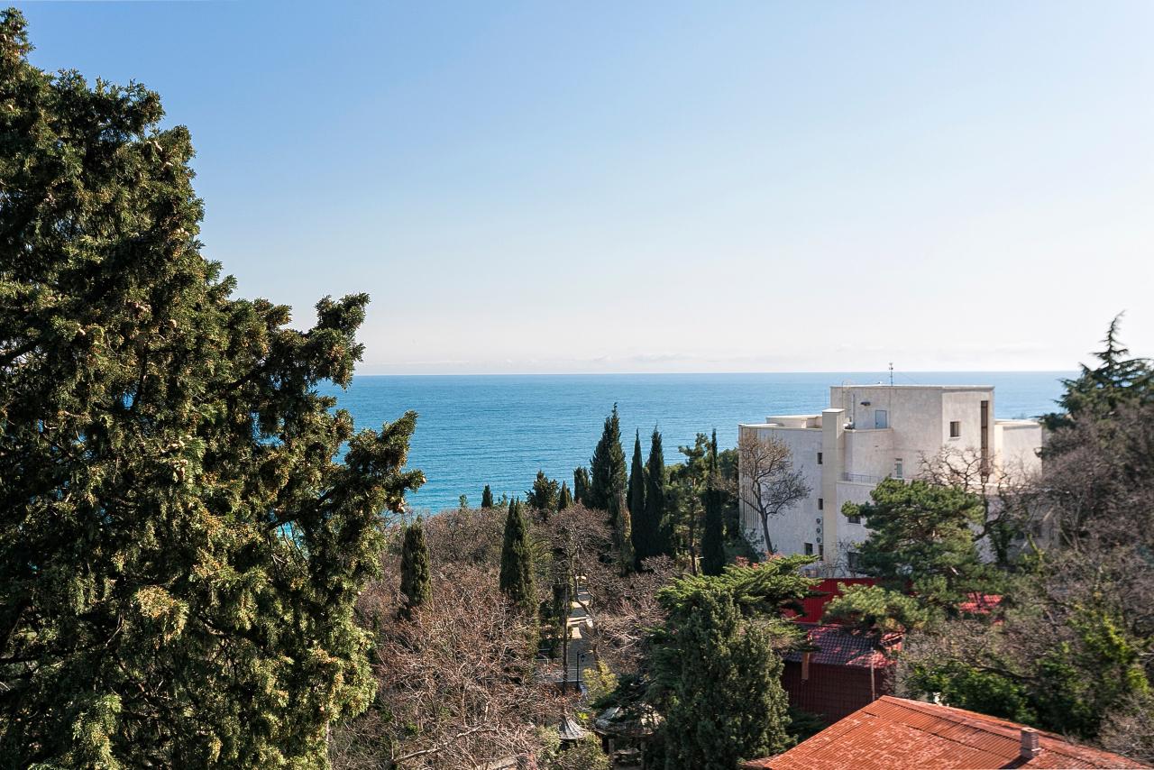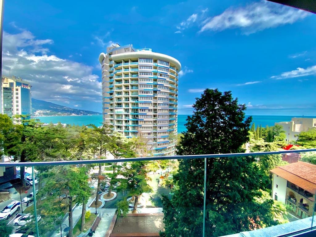 Из окон и с балкона квартиры открывается восхитительный вид на море и зелень Приморского парка.