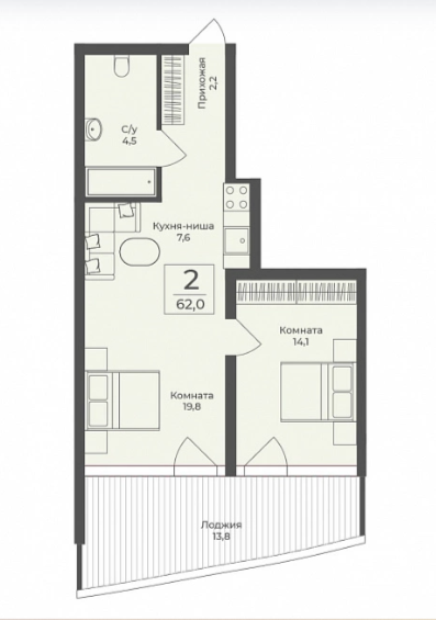 Площадь — 62,0 кв.м. Расположен на 2-м этаже.