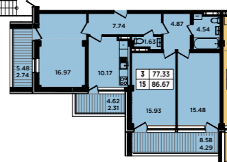 Площадь — 86,67 кв.м. Расположен на 6-м этаже.