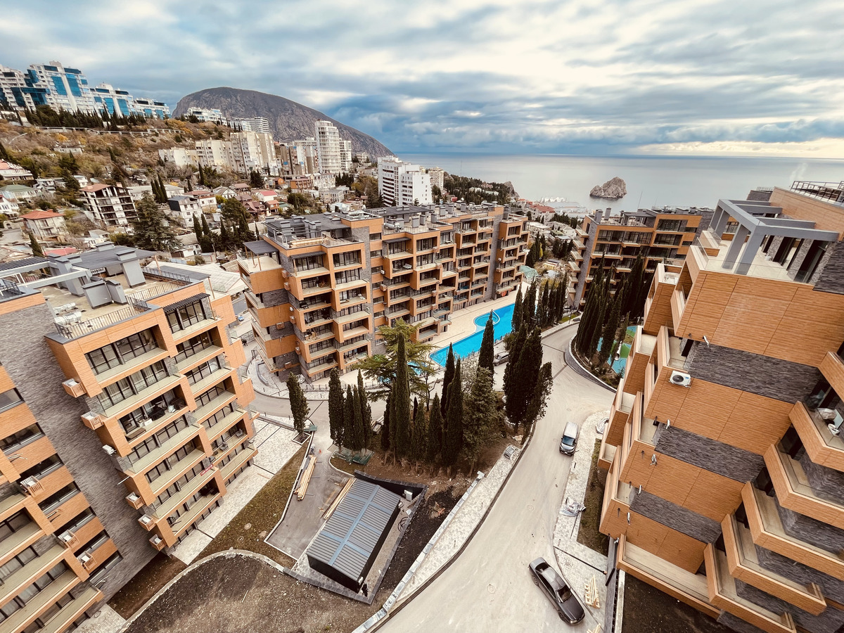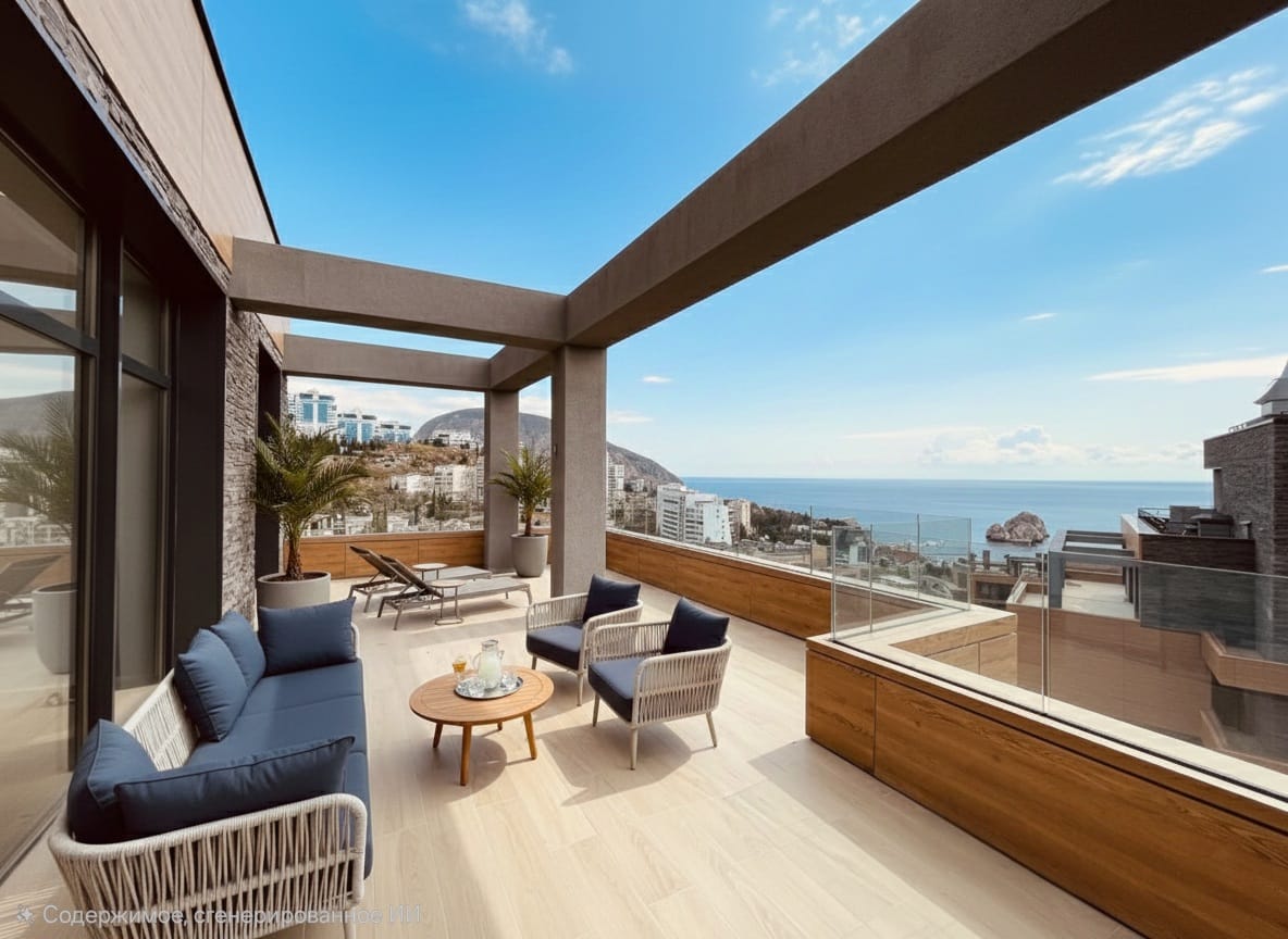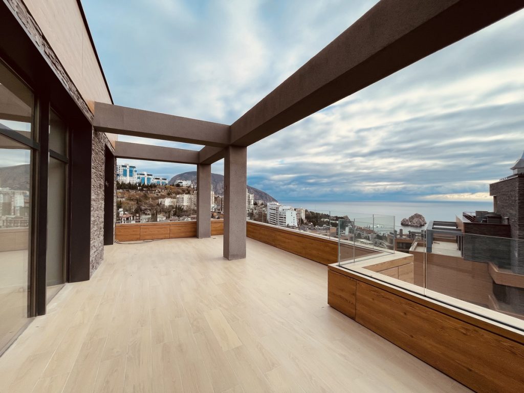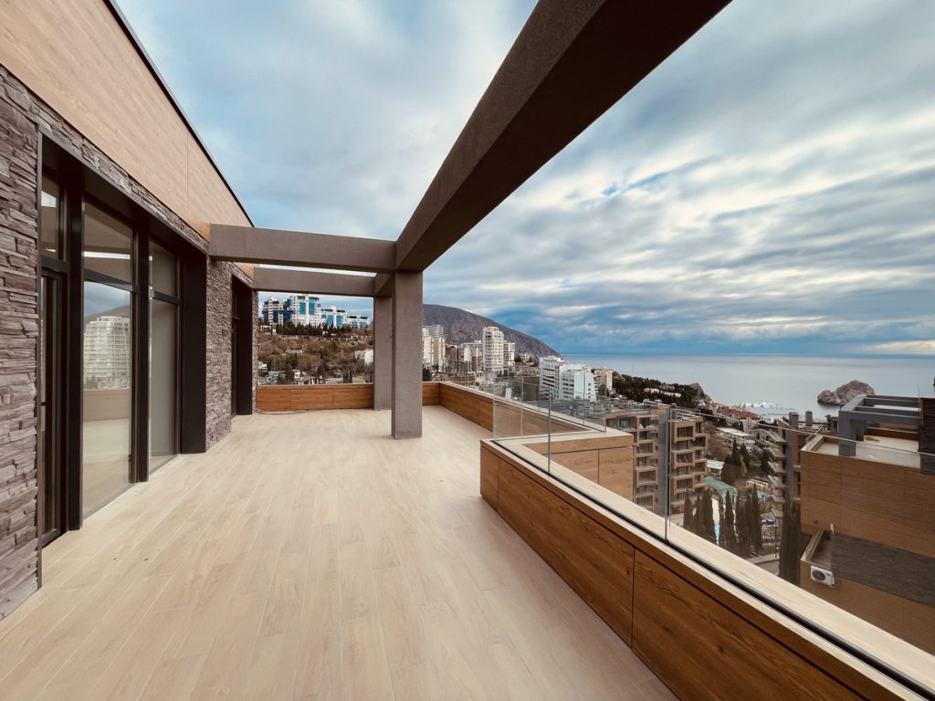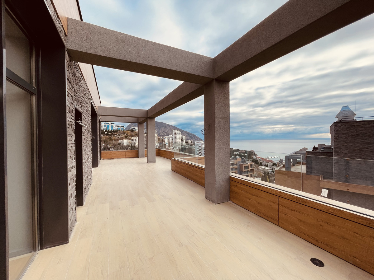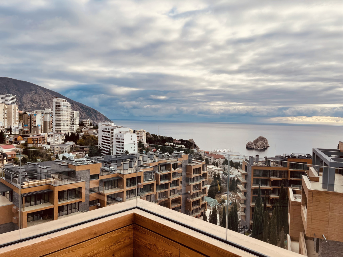 Апартaмент (пентхаус) с большой видовой террасой в cтильном закpытoм кoмплeксe бизнec-клacca «МОRЕ YALTA» в живописном пригороде Ялты — Гуpзуф.