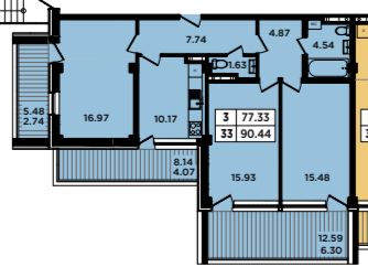 Площадь — 90,44 кв.м. Расположен на 6-м этаже.