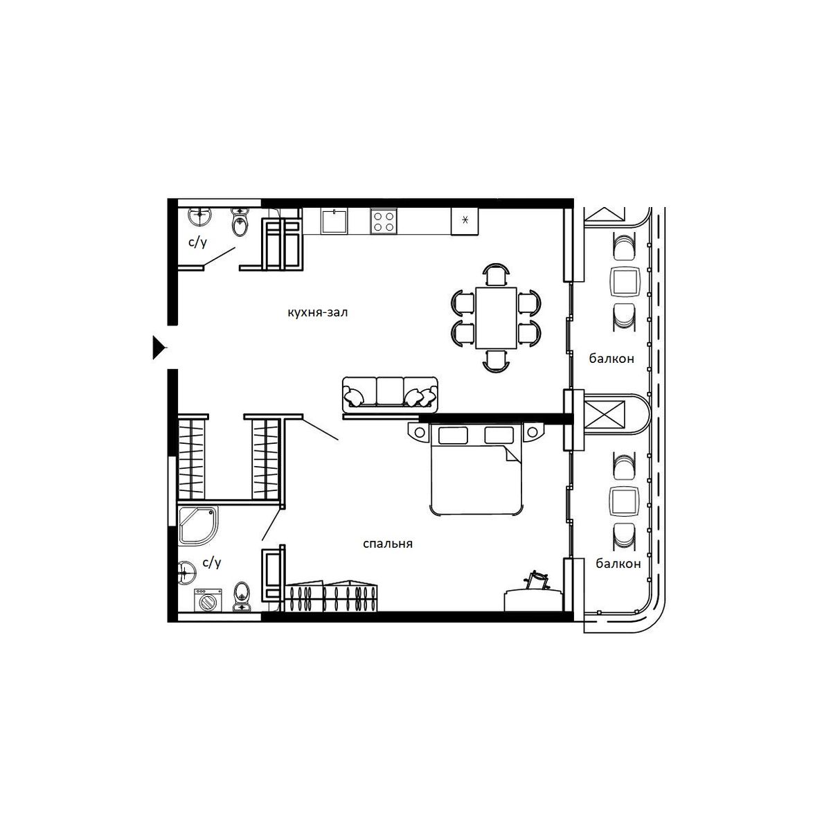 2-комнатная квартира в жилом комплексе бизнес-класса Юсуповский.