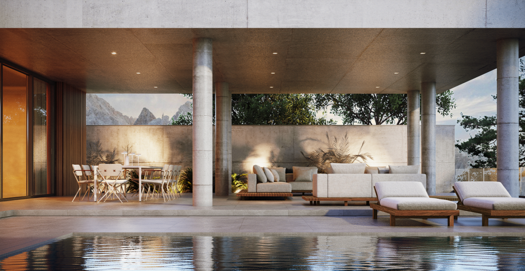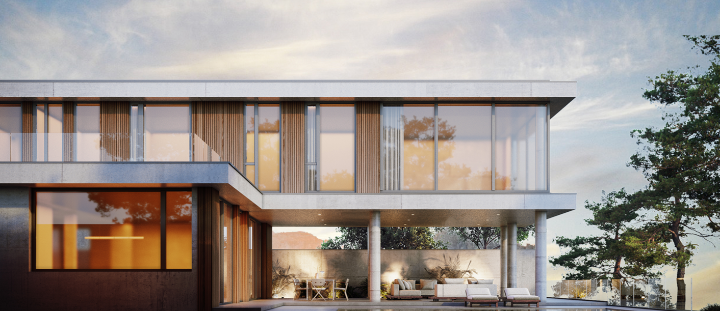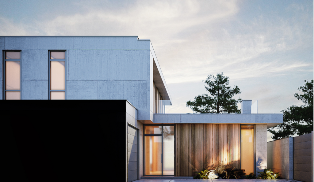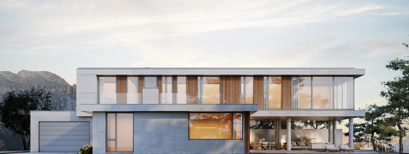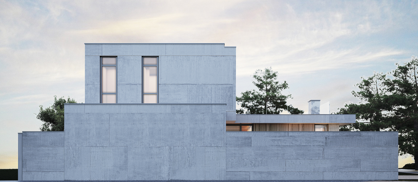 Сам дом полностью продумывался как для жизни, так и для комфортного отдыха семьи из 5-6 человек. Современные дизайнерские решения наполнили участок для лаконичного его использования. Каждый метр внутреннего пространства продуман с учетом всех ошибок, которые были учтены благодаря опыту прошлых проектов. Задумка: двухэтажный дом с гаражом, который развернут так, чтоб оставались виды из каждого окна и при этом не мешали друг другу. Первый этаж достаточно прост и понятен. Это гараж, технические помещения, гостевые санузлы, кухня гостиная и возможность расположить одну гостевую спальню. Второй же этаж, это полный полет фантазий, здесь спокойно можно разместятся 3 мастер спальни. Посадка на участке оставляет достаточно свободного места для сада, зоны барбекю, мест для загара или теневых зон и даже при желании бассейна.