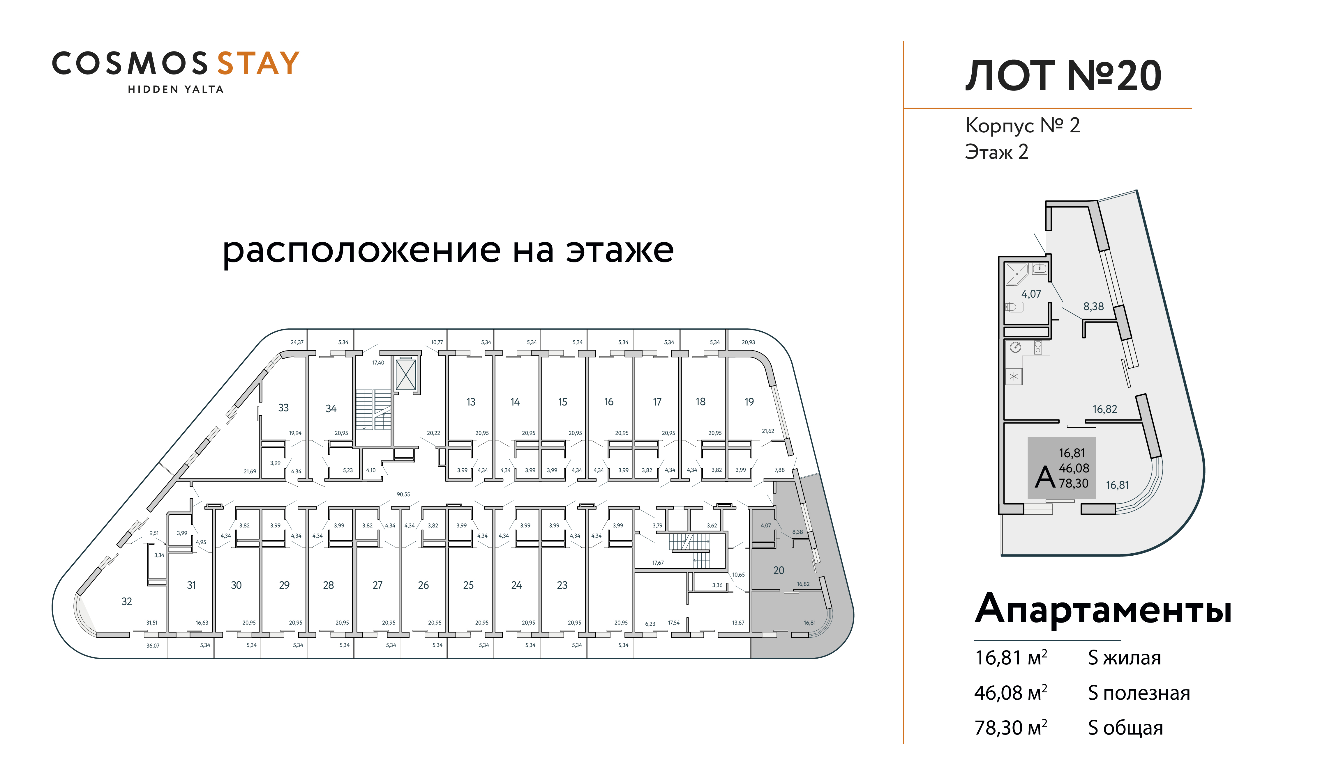 Площадь — 78,3 кв.м., расположен на 2-м этаже.
