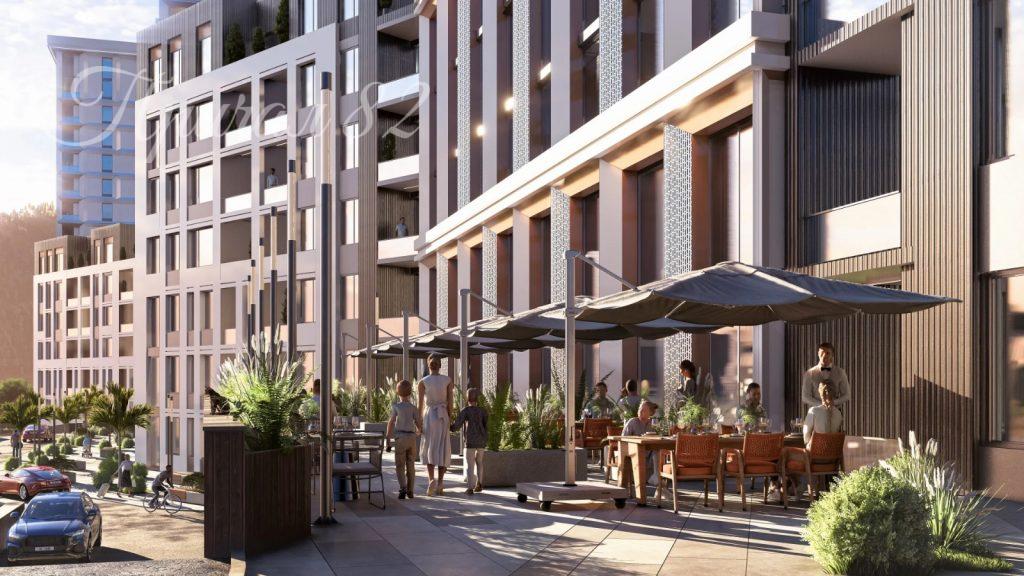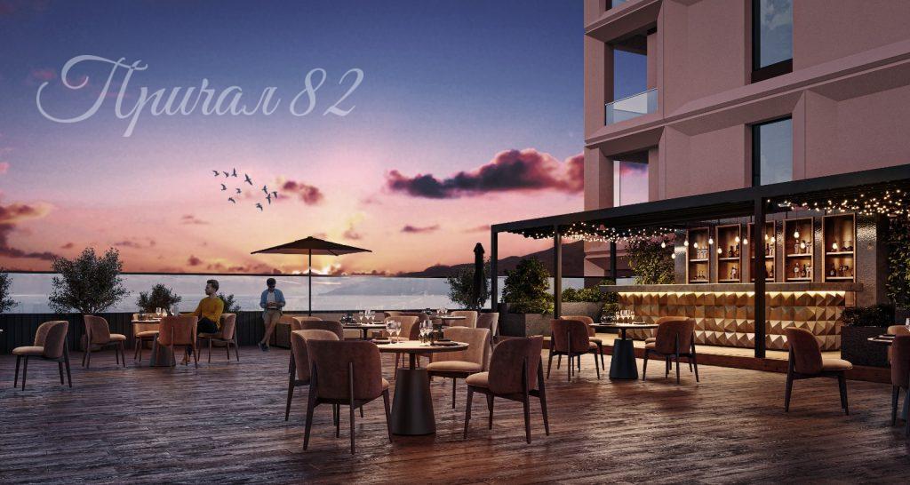 Приватная территория комплекса представляет собой ботанический сад с ресторанами и бассейном. Из всех окон квартир открываются захватывающие панорамы на морскую бухту, горные вершины и заповедный лесной массив.