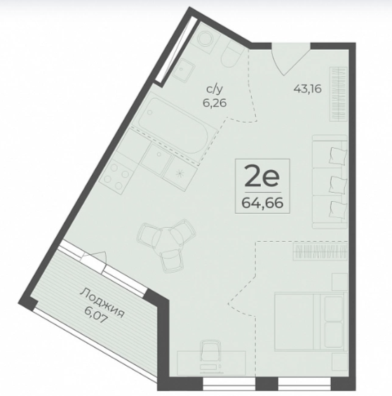 Площадь — 64,66 кв.м. Расположена на 3-м этаже.