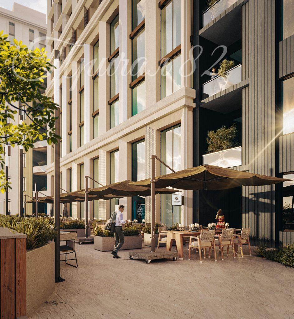 Приватная территория комплекса представляет собой ботанический сад с ресторанами и бассейном. Из всех окон квартир открываются захватывающие панорамы на морскую бухту, горные вершины и заповедный лесной массив.