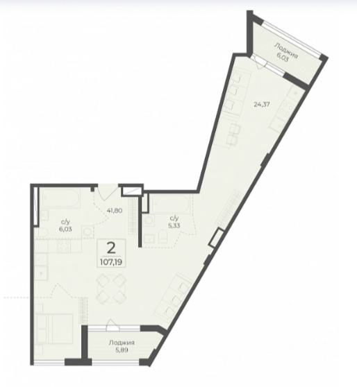 В квартире 2 лоджии — 6,03 кв.м. и 5,89 кв.м.