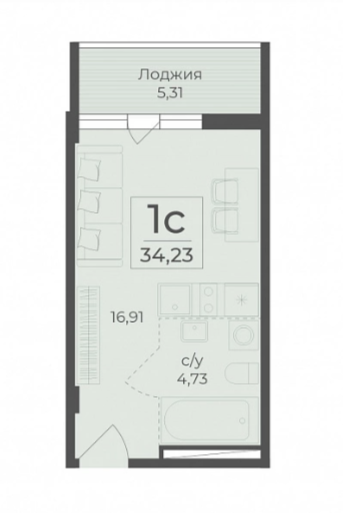 Площадь — 34,23 кв.м. Расположена на 7-м этаже.