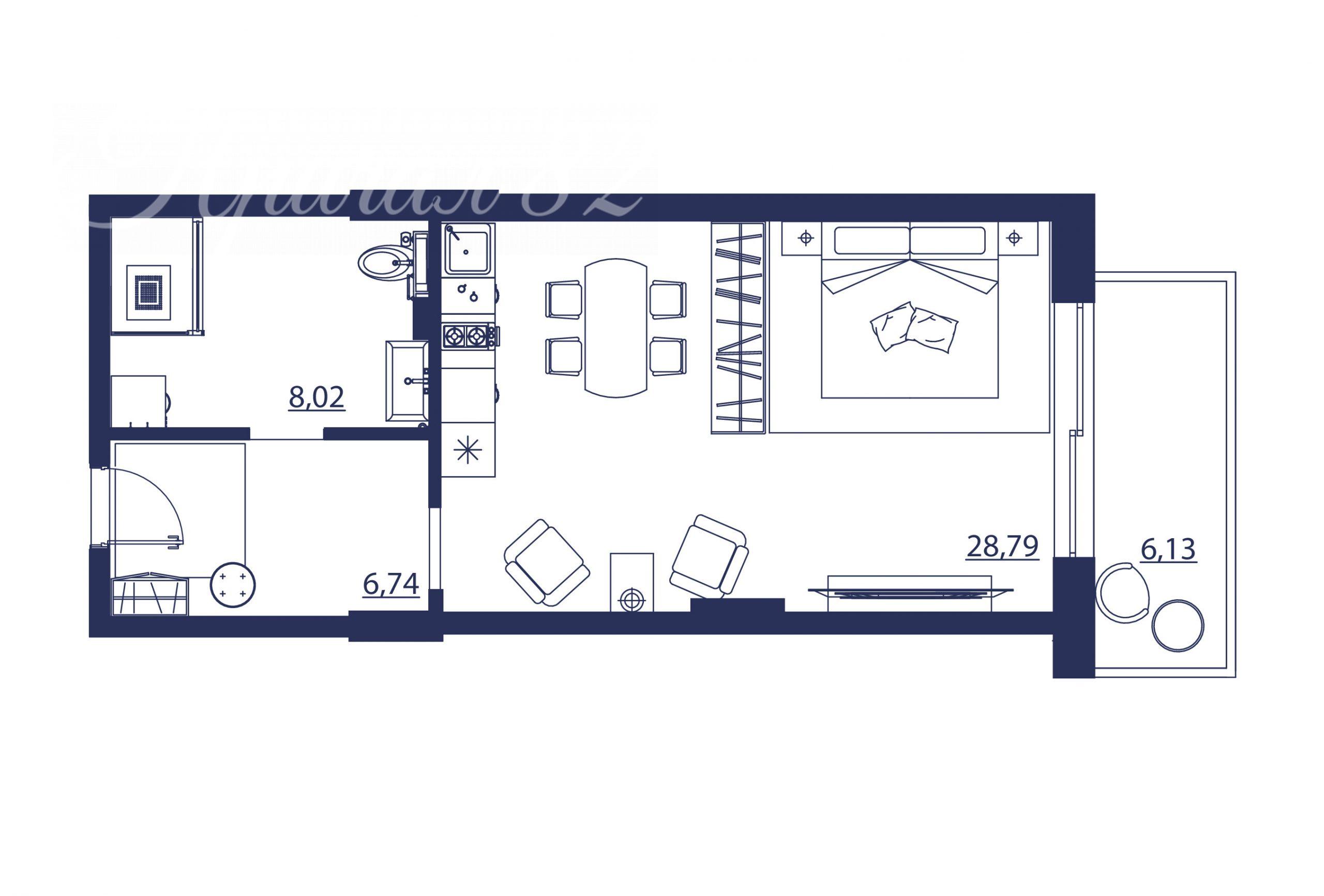 - общая площадь - 49,68 кв.м