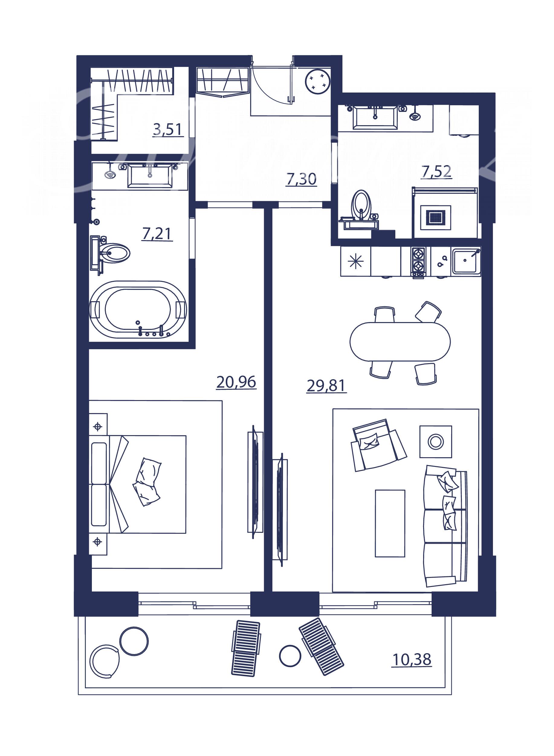 Двухкомнатные апартаменты 52 в апарт-комплексе Кедровый, общей площадь 86,30 кв.м, с прекрасным видом на море.