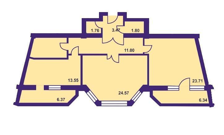 Две изолированные просторные комнаты, два балкона, большая кухня, два санузла, прихожая и вместительная гардеробная.