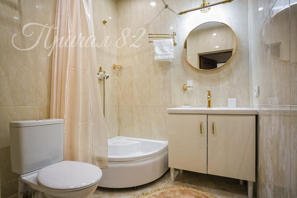 Первый вариант – это уютная однокомнатная квартира, созданная для максимального комфорта. Мастер-спальня с собственным гардеробом и санузлом обеспечивает приватность и функциональность. Отдельный гостевой санузел добавляет удобства для посетителей, а просторная кухня-гостиная становится сердцем дома, местом для общения и отдыха.