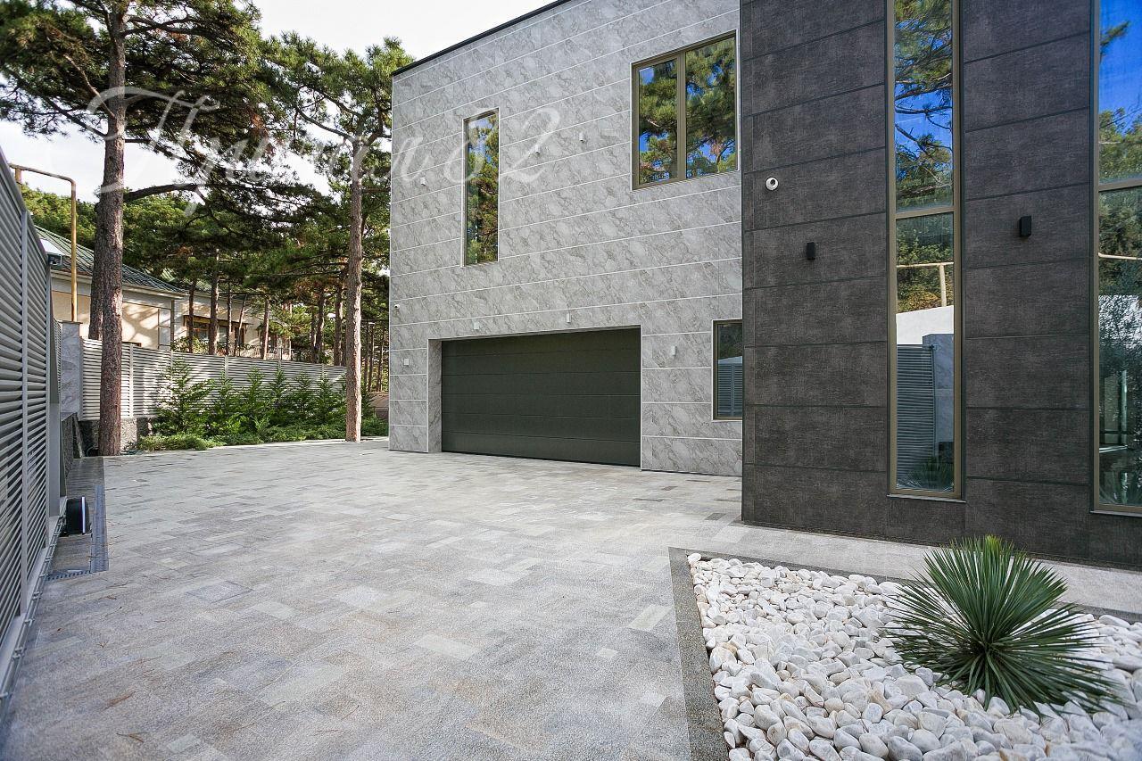 Так же на территории дома есть помещение для охраны, жилье для персонала (в цокольном этаже с отдельным входом) и гараж для двух автомобилей.