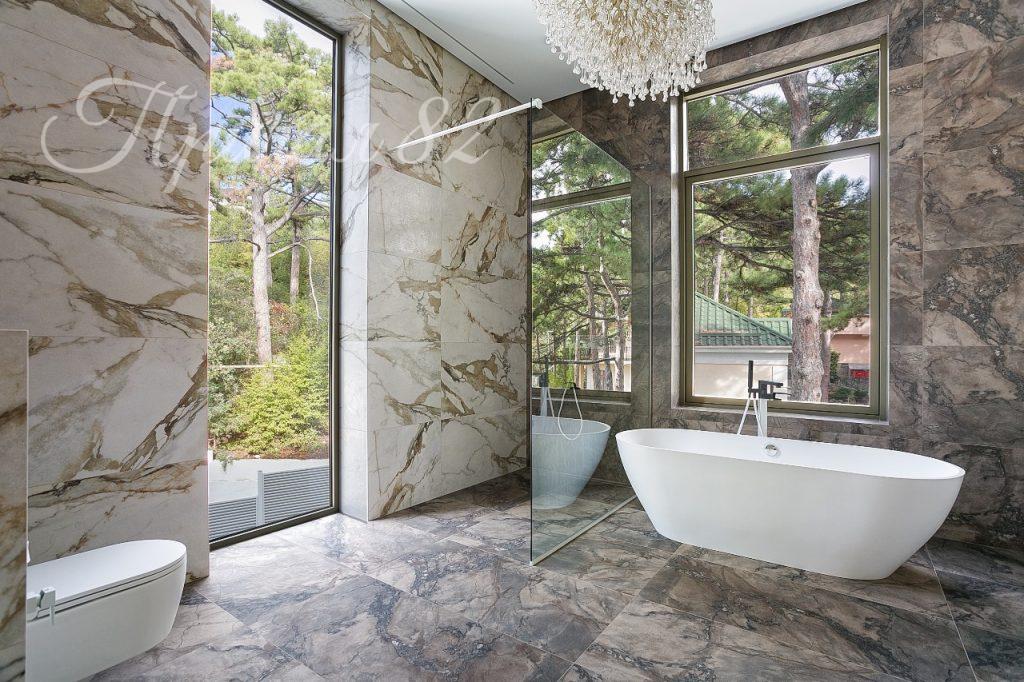 Выполнена отделка всех санузлов и установлено все сантехническое оборудование и приборы.