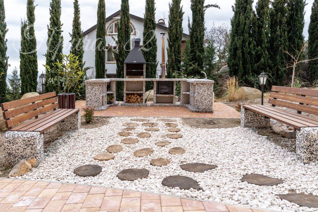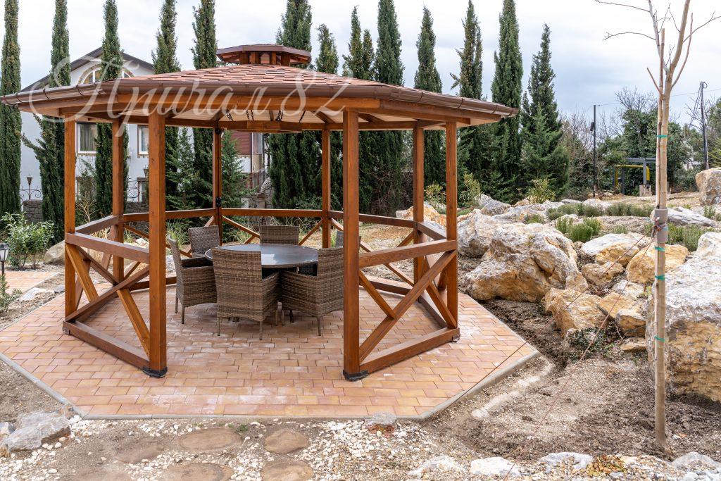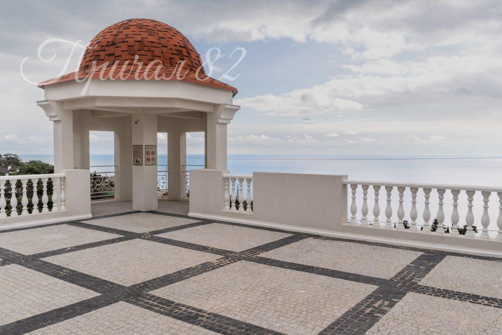На закрытой территории комплекса расположены — прогулочные аллеи и террасы с видом на море и горы, детские и спортивная площадки, детская игровая комната, парковая зона с беседкой, зона барбекю, крытый бассейн, сауна, кабинет врача, зона ресепшена.