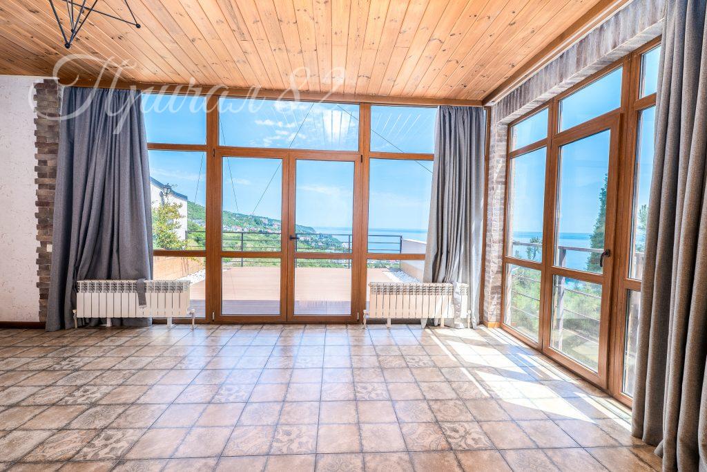 Второй этаж располагает кухней с современной встроенной мебелью и техникой от зарубежных производителей, просторной гостиной с камином на дровах, застекленной лоджией с видом на море и ванной комнатой с душевой кабиной.