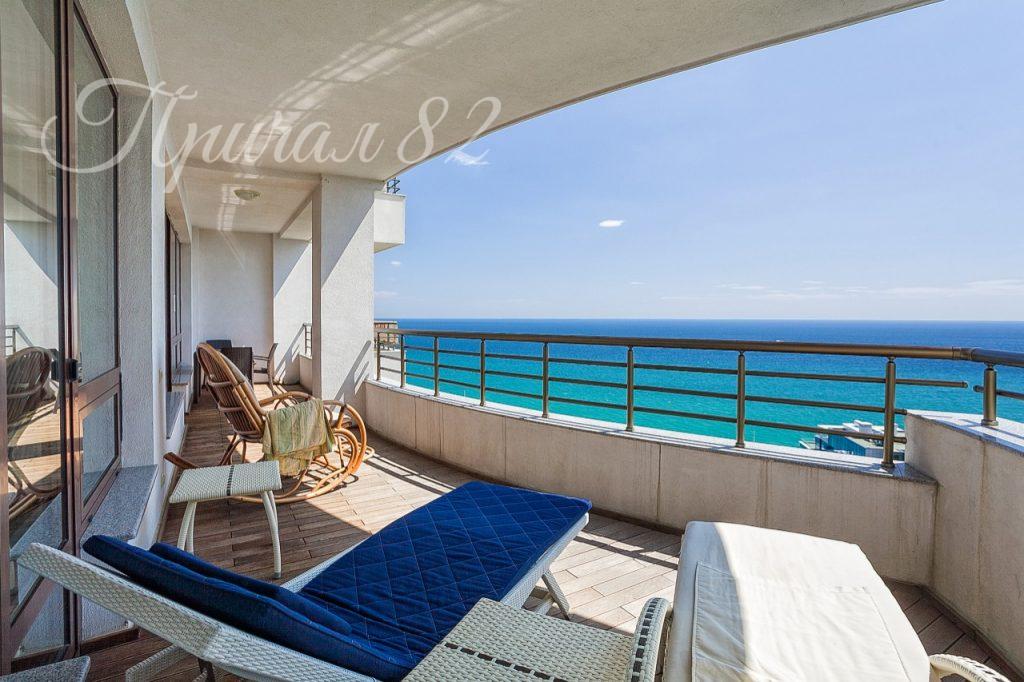 Неоспоримый плюс этого апартамента – просторная открытая терраса с панорамным видом на море и парк.