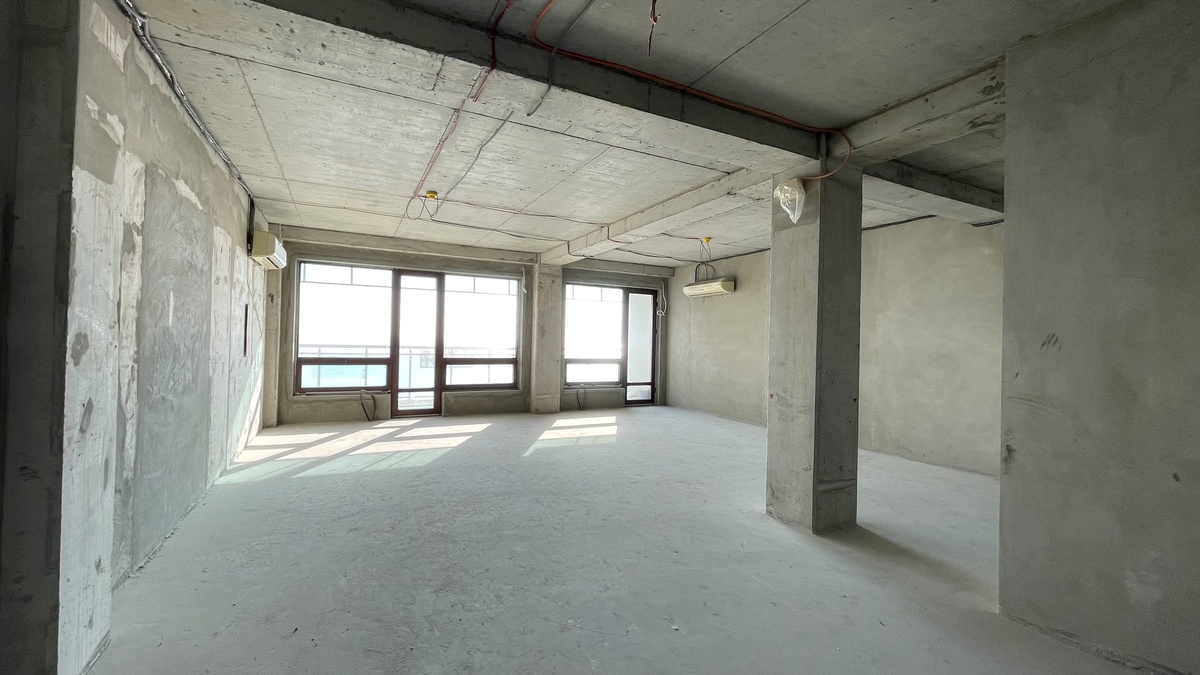 Свободная планировка и расположение окон позволят обустроить апартамент с изолированной спальней и просторной гостиной.