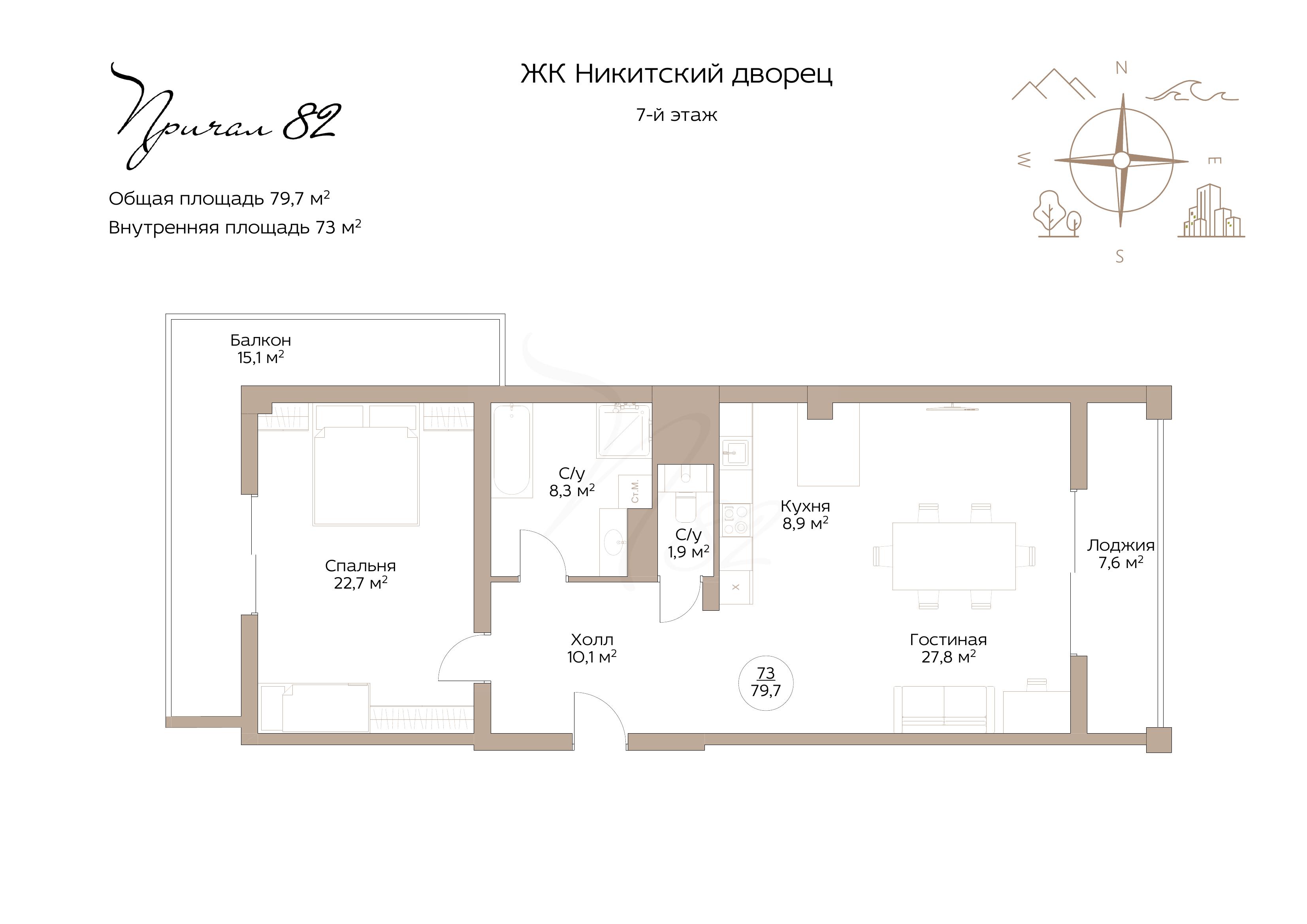 Квартира №73 с ремонтом в ЖК Никитский дворец