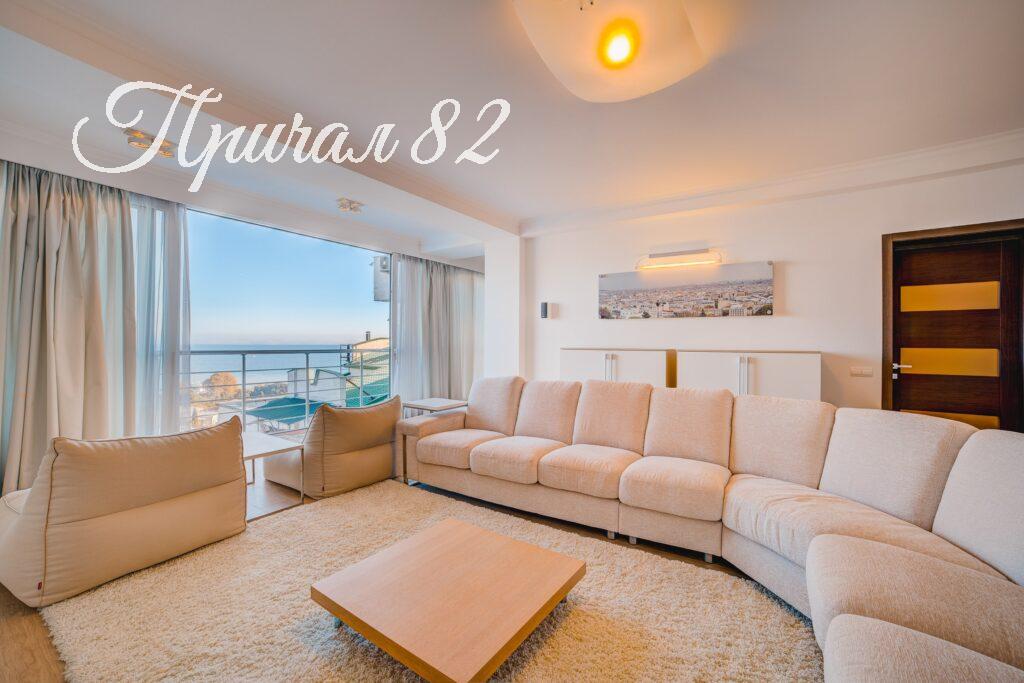Просторная квартира с индивидуальным дизайнерским интерьером общей площадью 175 м² расположены на 13 этаже 14 этажного дома. Отсюда открывается панорамный вид на море и Ялту.