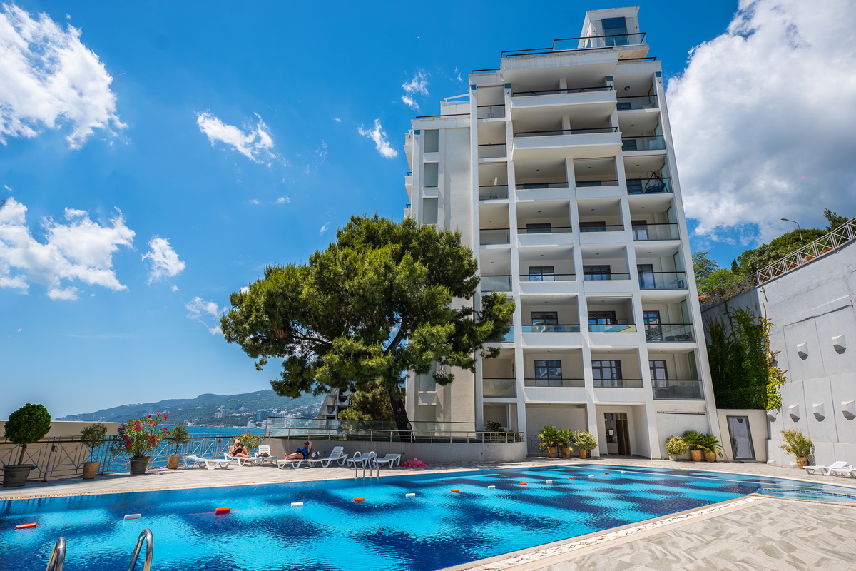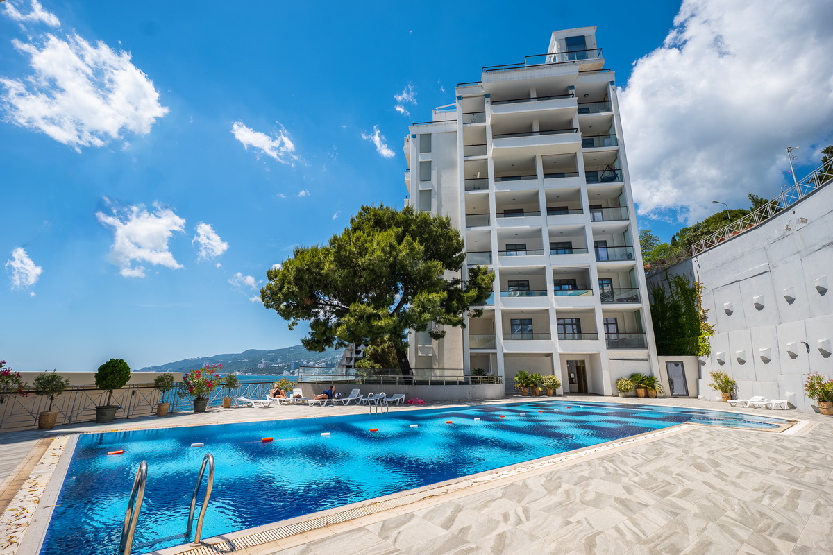 Это единственный комплекс в Ялте, обладающий собственным закрытым пляжем, расположенный на первой линии у самого моря.